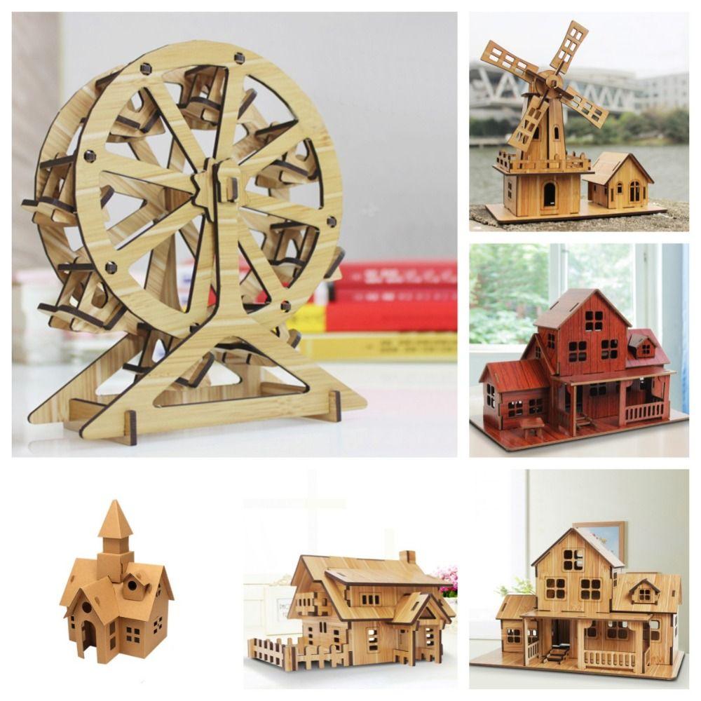 Замок 3D Деревянный Пазл Вилла Дом Бамбук Сделай Сам Колесо Обозрения Модель Развивающие Подарки
