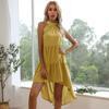 Женская мода сплошной цвет печати летние повседневные платья без рукавов с высокой талией