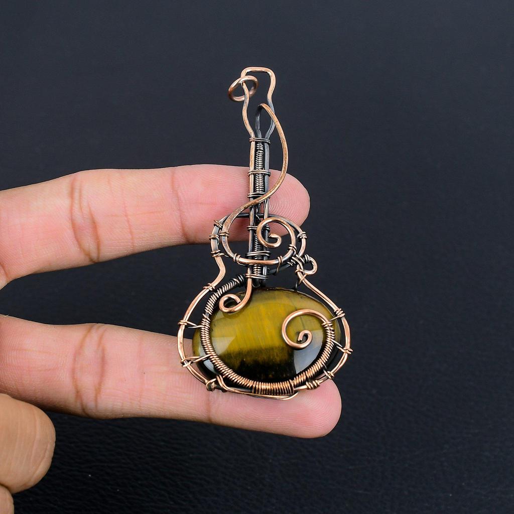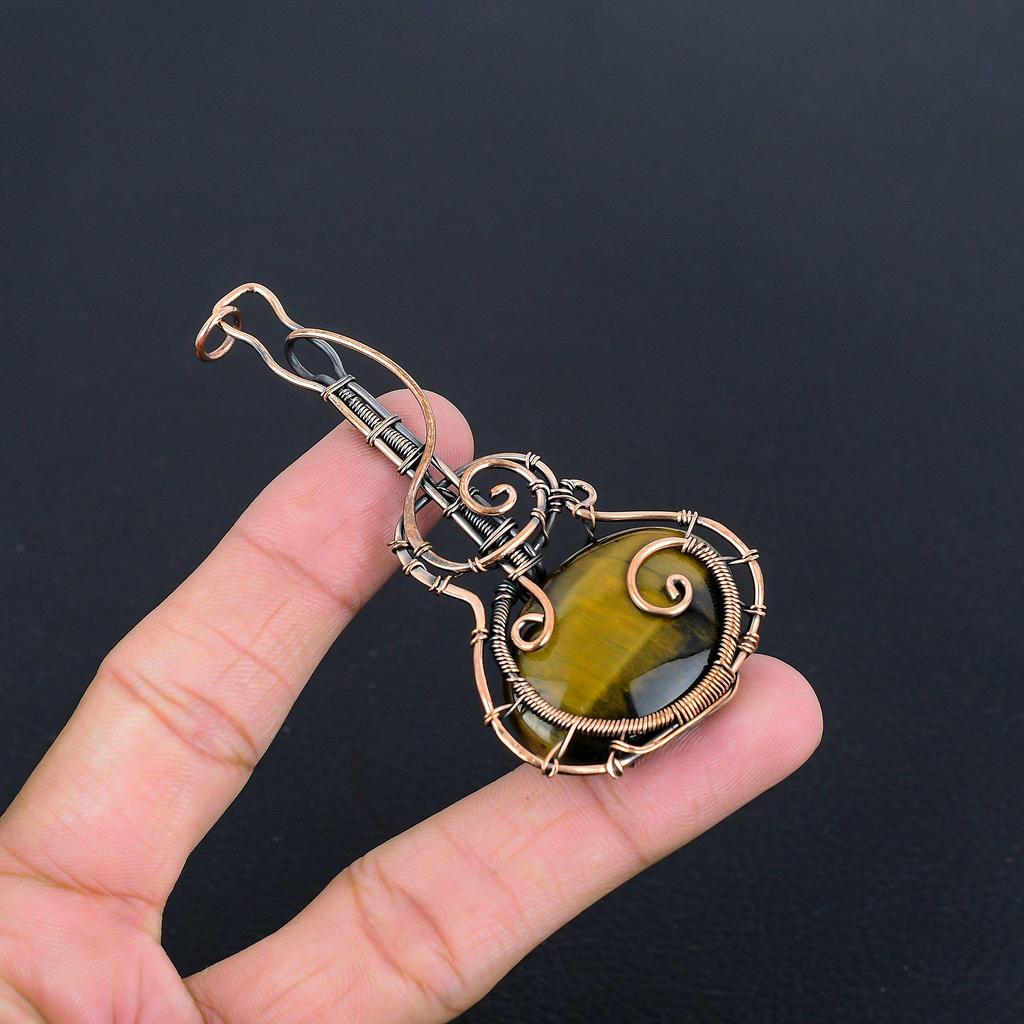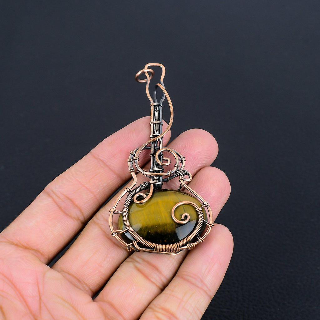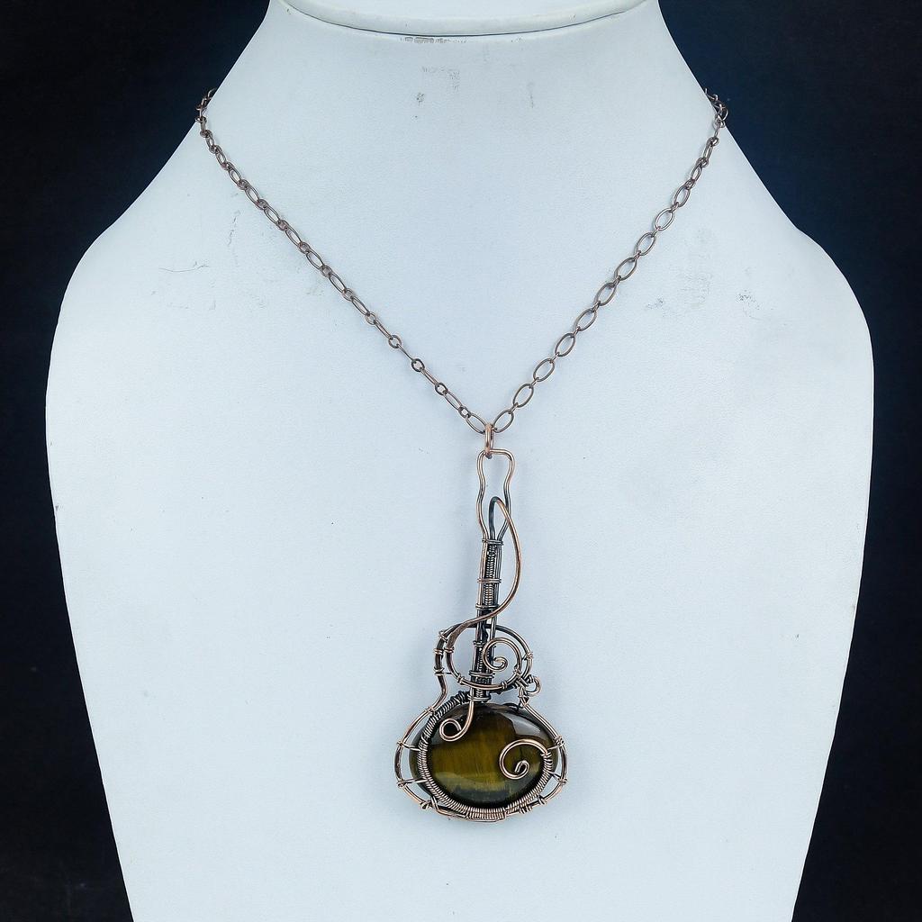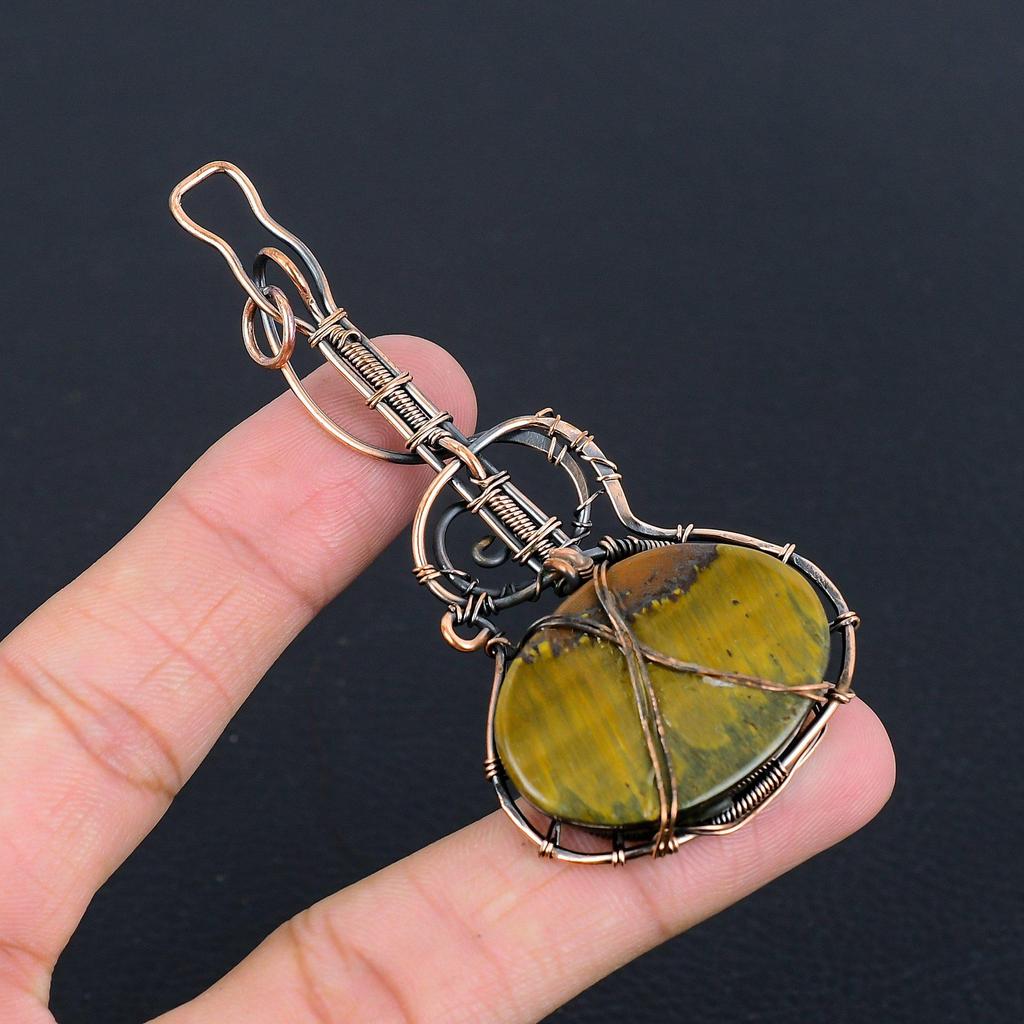 Кулон из Тигрового глаза, обернутый медной проволокой 999 пробы, Кулон из драгоценного камня ручной работы, Подарок для мамы, Антикварные украшения
