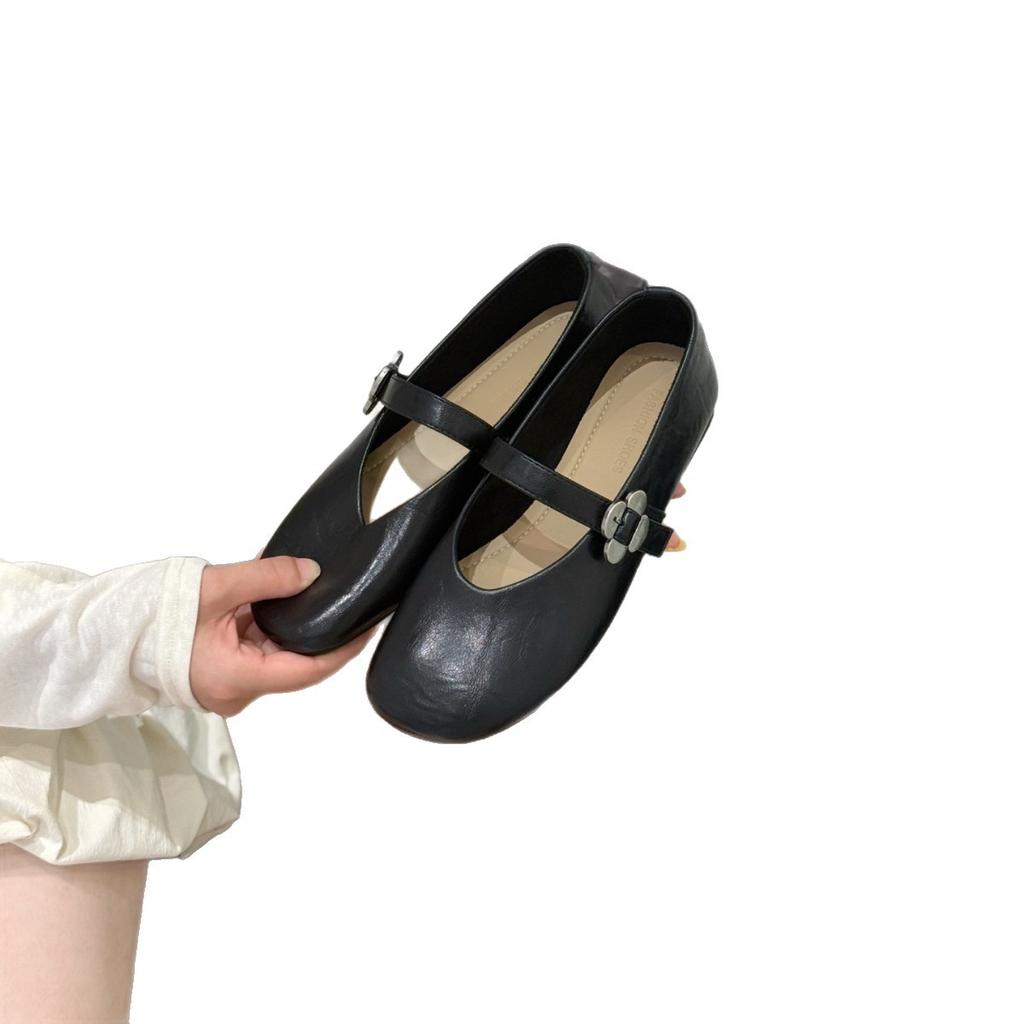 2025 новые ретро туфли Мэри Джейн женские осенние туфли на плоской подошве с мелким вырезом, балетки, повседневные туфли с мелким вырезом