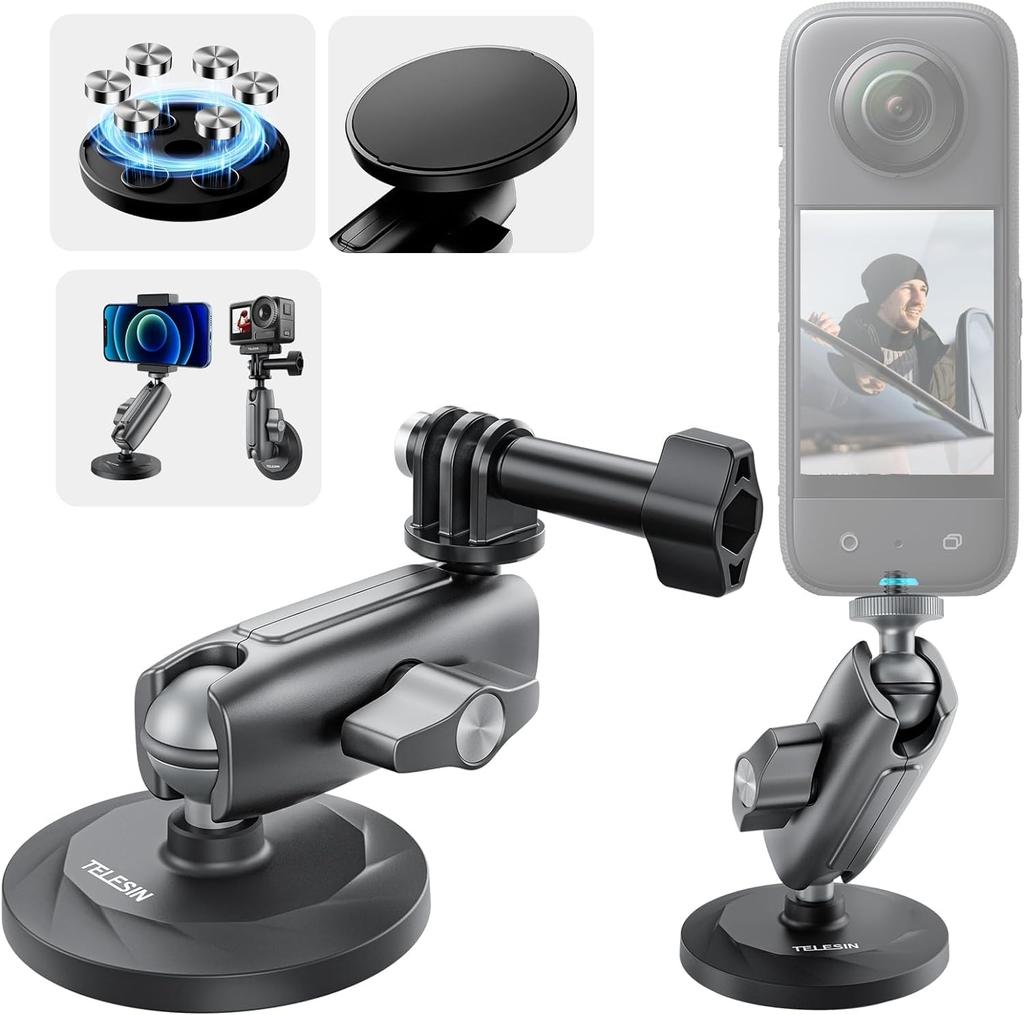 Набор магнитных подставок TELESIN, Свободностоящая шаровая головка с вращением на 360°, Сверхсильная магнитная сила, Грузоподъемность по вертикали, Магнитное основание для GoPro, Алюминиевый сплав с винтом 1/4", Крепление для камеры для GoPro Hero 12, 11, 10, 9, 8, 7, Insta360, DJI OMSO, Экшн-камер, Видеокамер, Штативов и Зеркальных камер