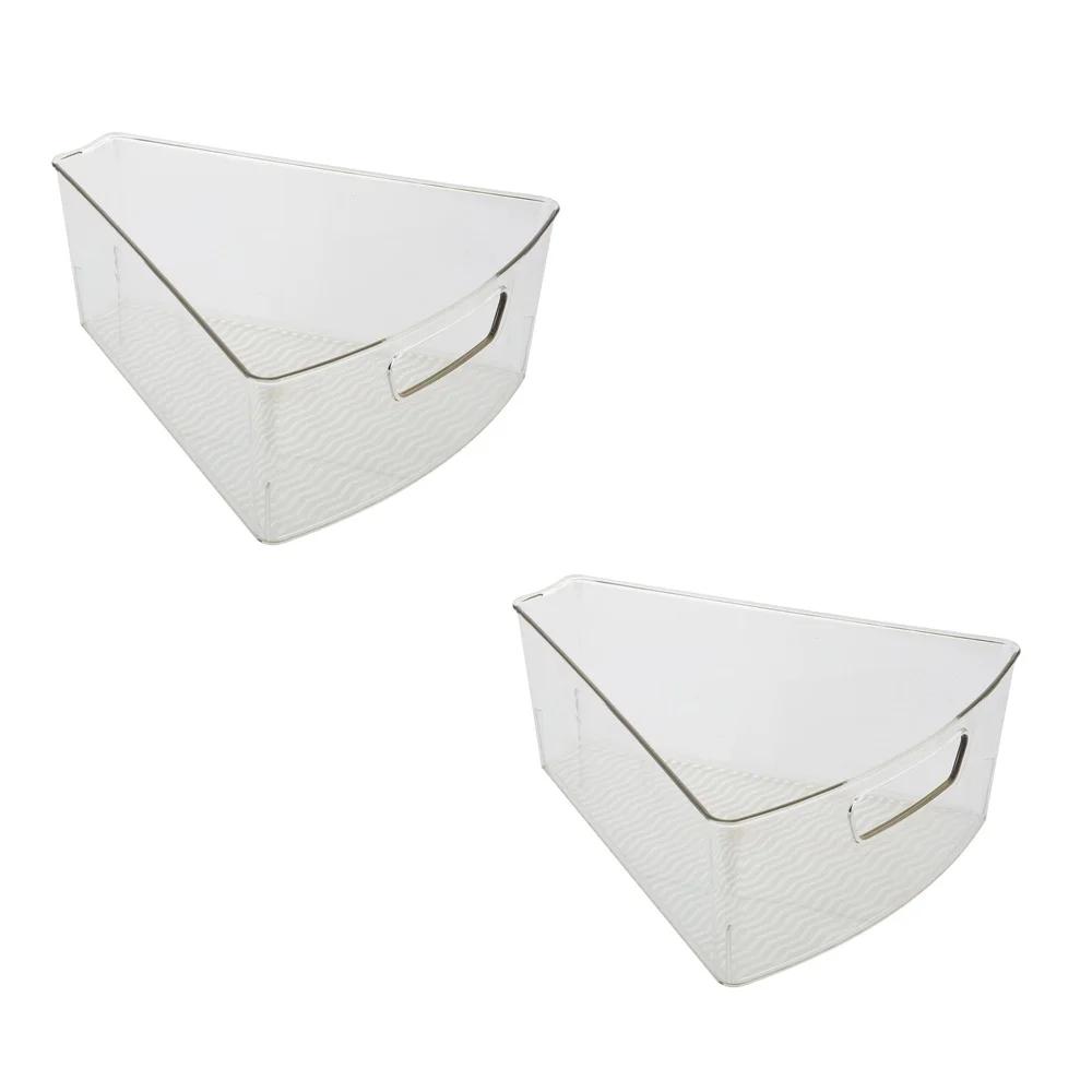 Набор из 2 треугольных органайзеров-каруселей для хранения, угловые шкафы, штабелируемые прозрачные корзины с ручками, легкий доступ