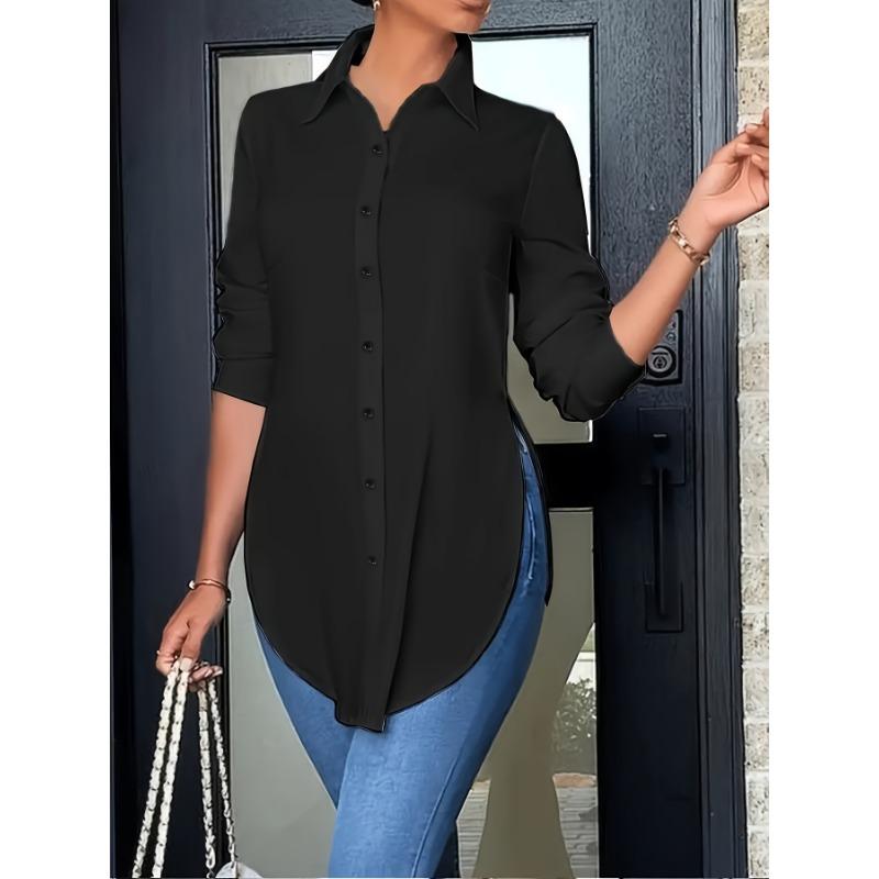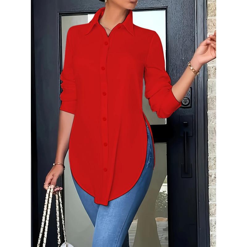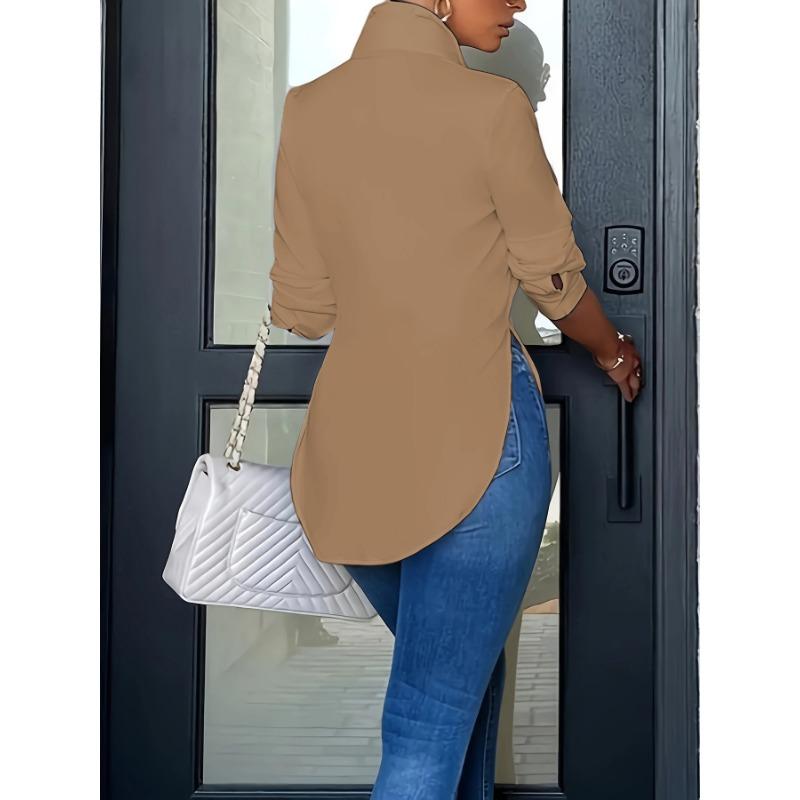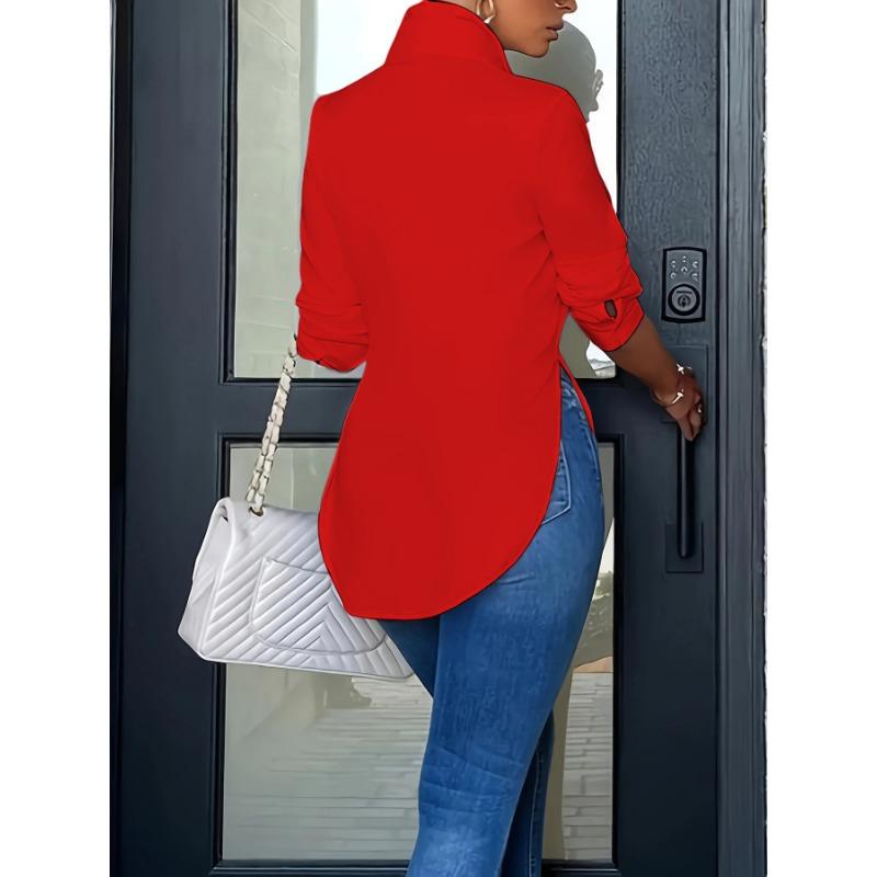 Женские модные повседневные весенне-осенние однотонные рубашки-поло с длинным рукавом и принтом, блузки и рубашки