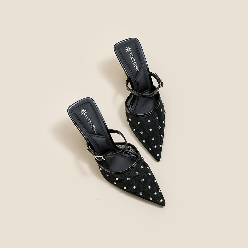 Grape mother summer new sandals European and American hot diamond temperament small pointed mesh yarn 6cm thin heel empty sandals women's shoes
