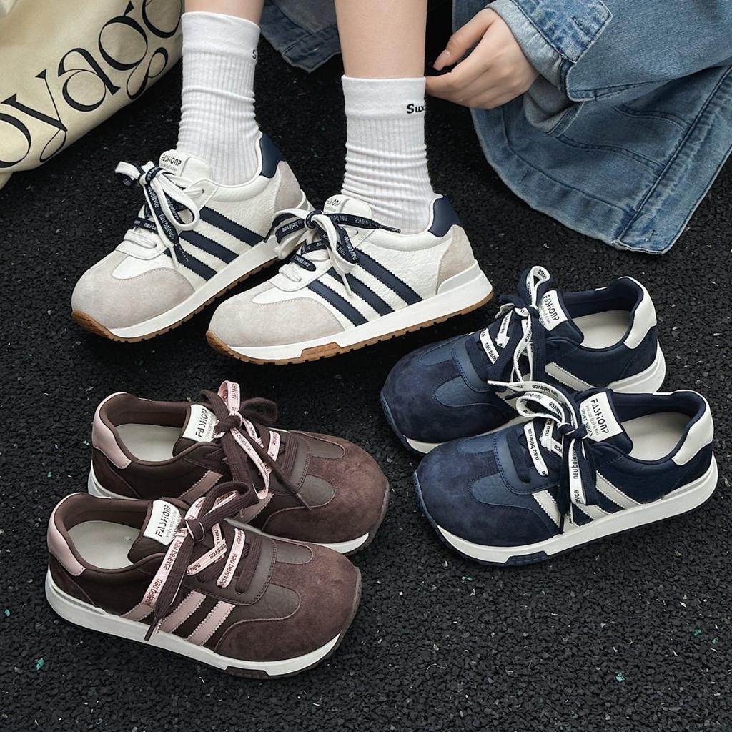 Корейская версия ins повседневная спортивная двойные шнурки цветовая гамма мягкая подошва большая голова немецкая тренировочная женская 2025 новая ретро Forrest Gump кеды