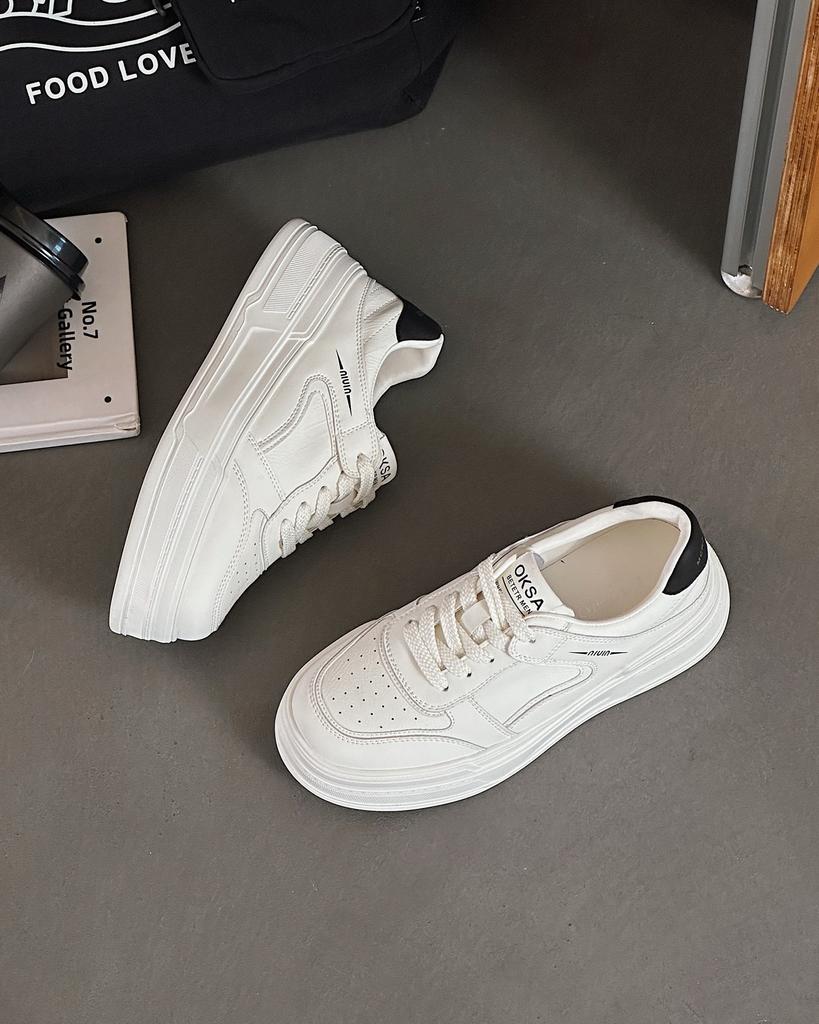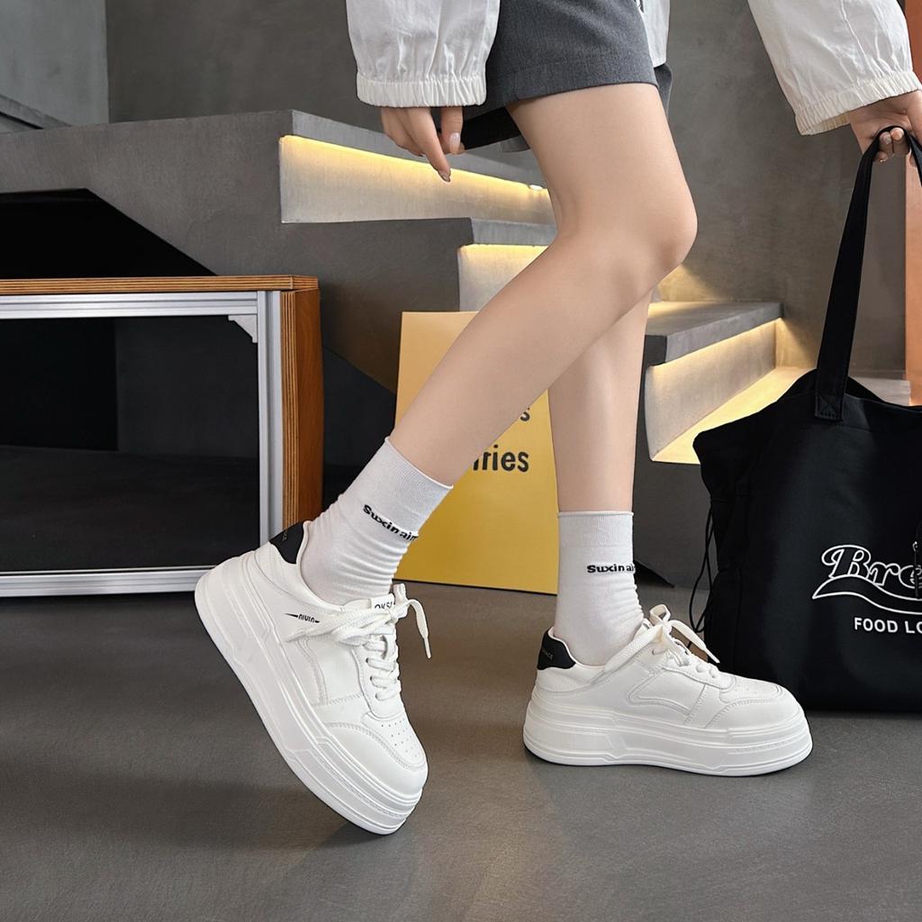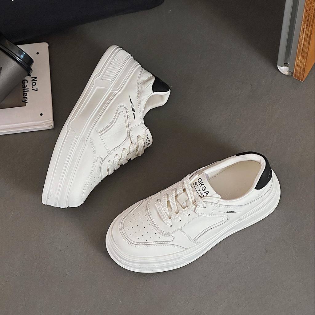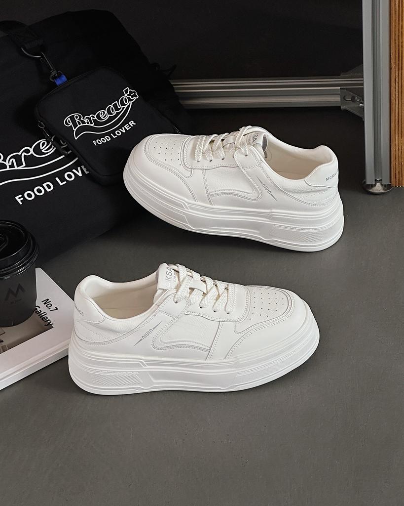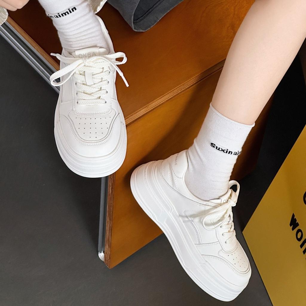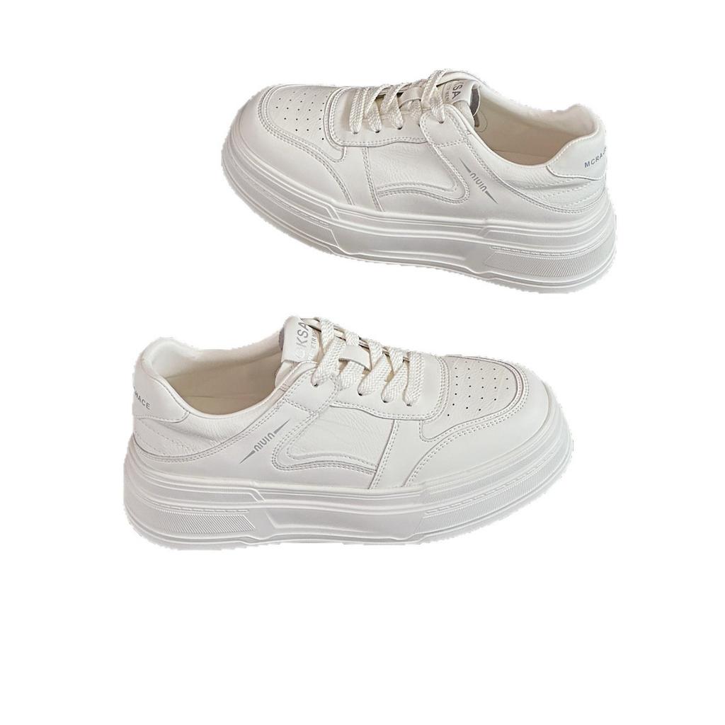 Кожаная платформа белые туфли женские 2025 осень новые универсальные повседневные спортивные кеды на утолщенной мягкой подошве туфли-хлебушки