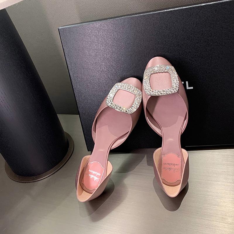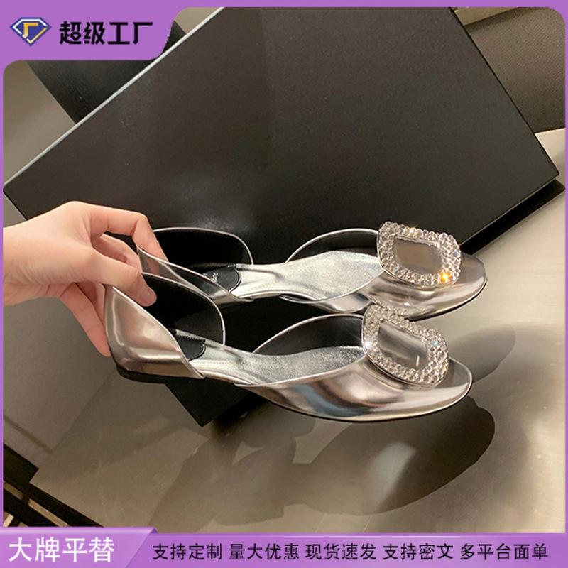 Виноградная мать studiolee лето новая мода фея круглая голова квадратный бриллиант ювелирные изделия мелкий вырез полый плоская подошва одинарная обувь женщины