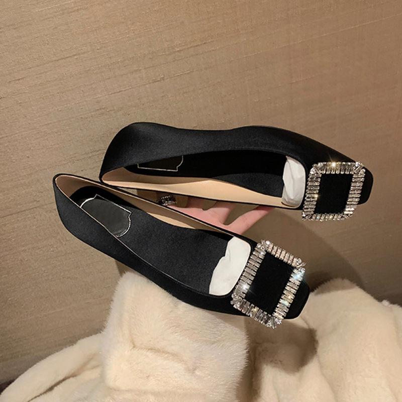 Виноградная мать Studiolee квадратный носок стразы мелкий вырез квадратная пряжка шелк ретро темперамент балетки одинарная обувь женская весна и лето