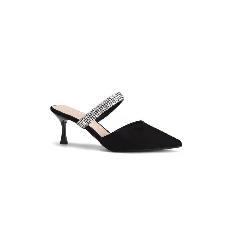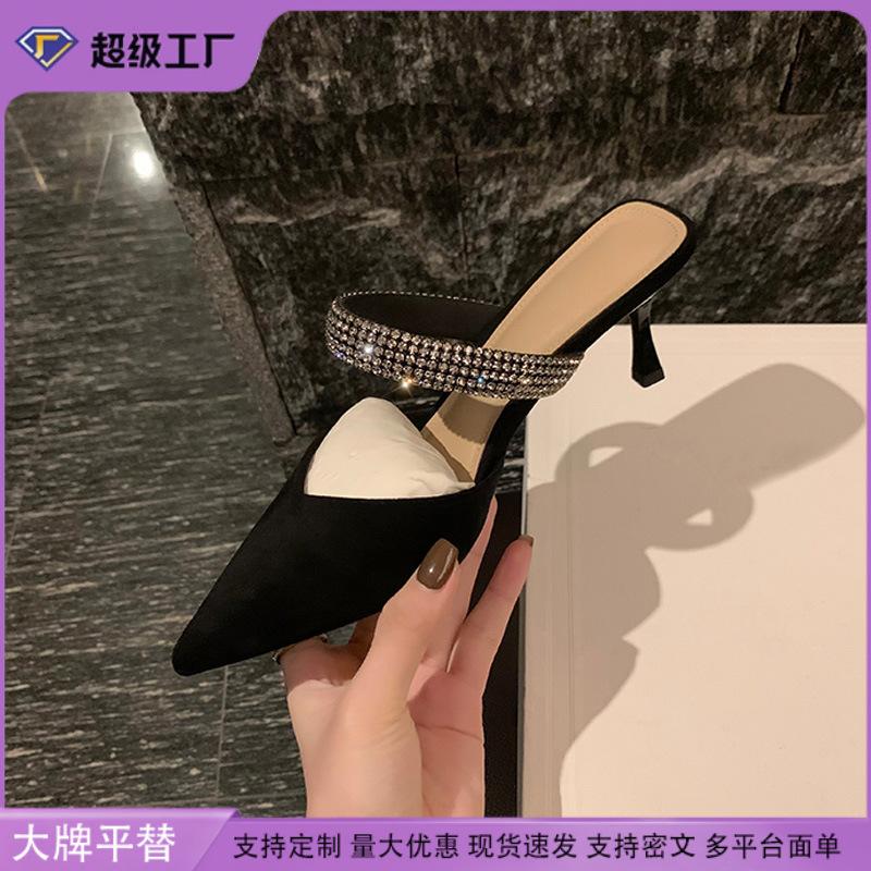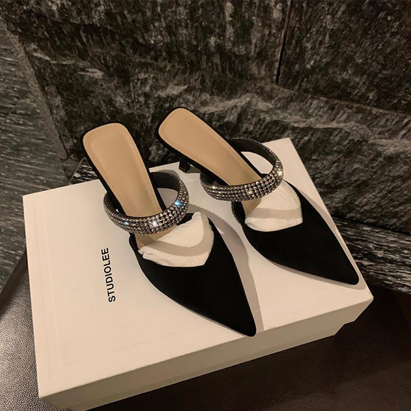 Виноградная мама studiolee Французские элегантные остроносые сандалии ремешок с бриллиантами одна педаль толстый каблук полушлепанцы женские весна лето
