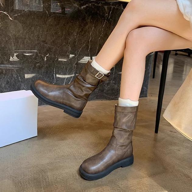 Мать винограда осень и зима новые ретро короткие ботинки корейская версия плиссированные ботинки-чулки удобные на толстой подошве ботинки Мартин стройнящие ботинки
