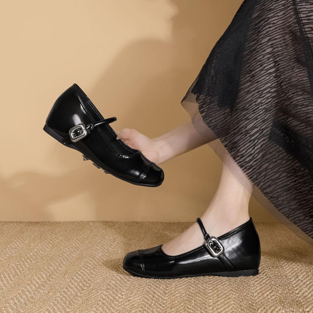 Осень 2025 новые удобные женские туфли на толстой подошве, мягкая подошва не утомляет, маленькие люди увеличивают свой внутренний рост и демонстрируют длинные ноги, одинарные с