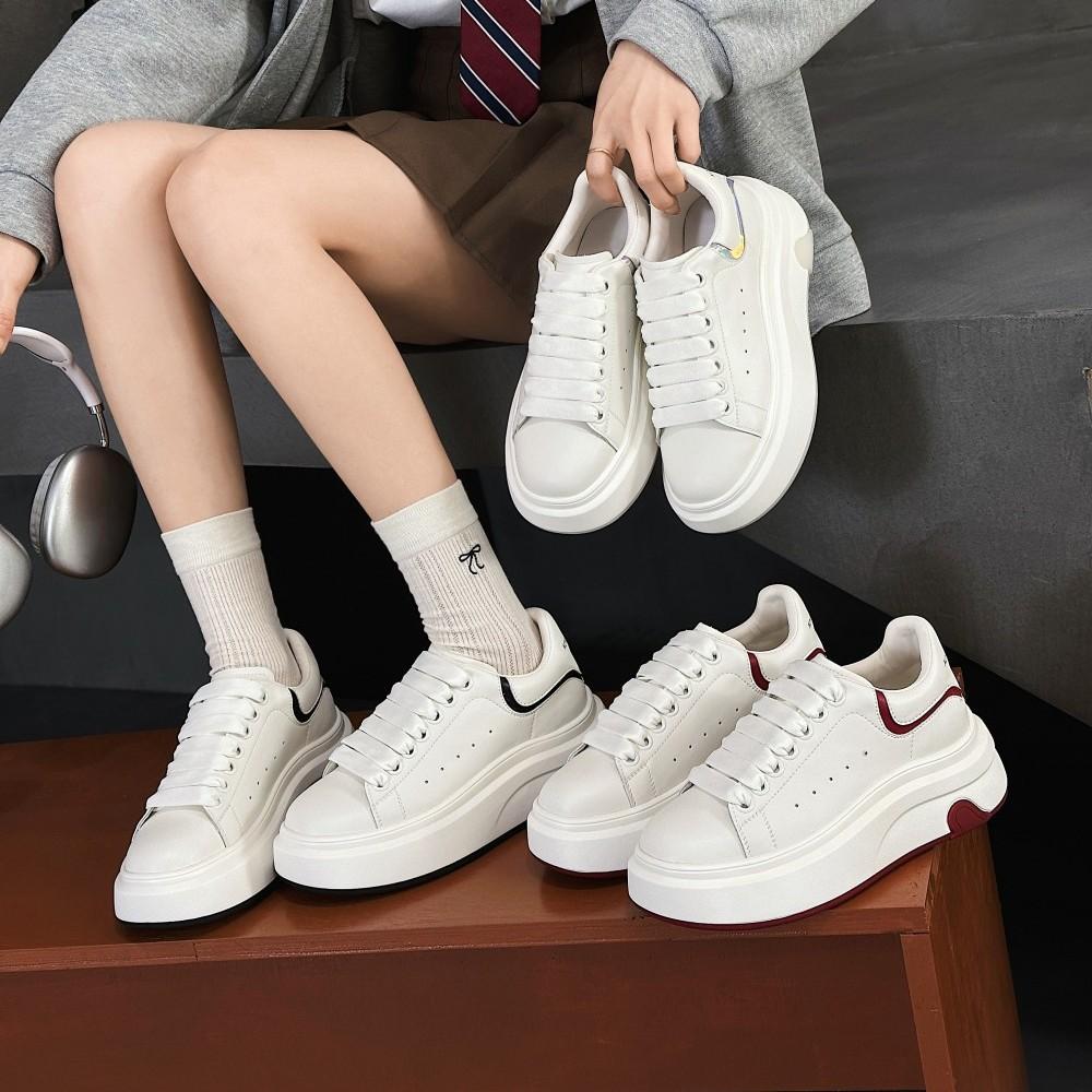 Кожаные ретро маленькие белые туфли женские 2025 весна новинка любовь McQueen универсальные на толстой подошве увеличивающие рост повседневные спортивные кеды для скейтборда