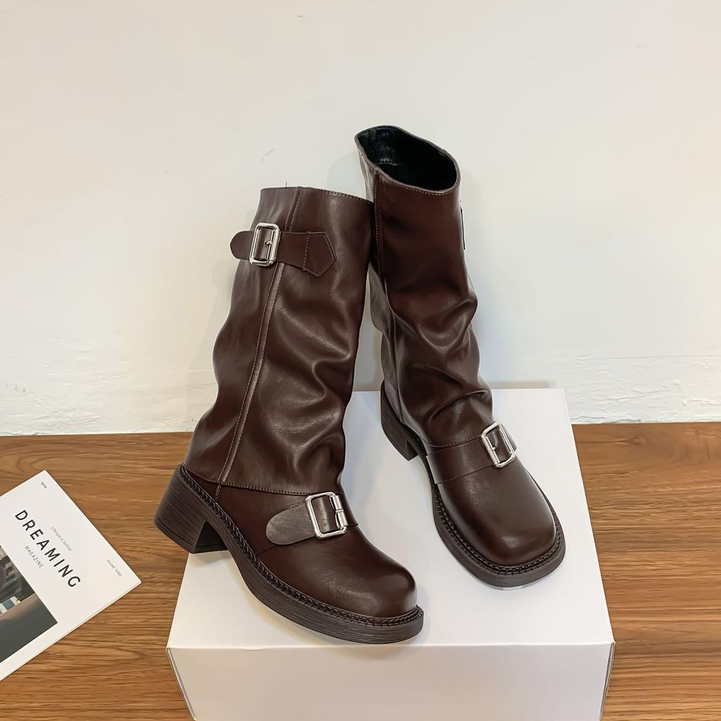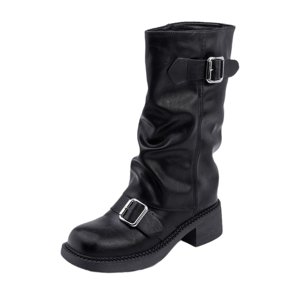 Корейские новые рукава брюки ботинки пряжка ремня модная верхняя одежда модные ботинки длинный голенище до колена толстая подошва ботинки на высокой подошве