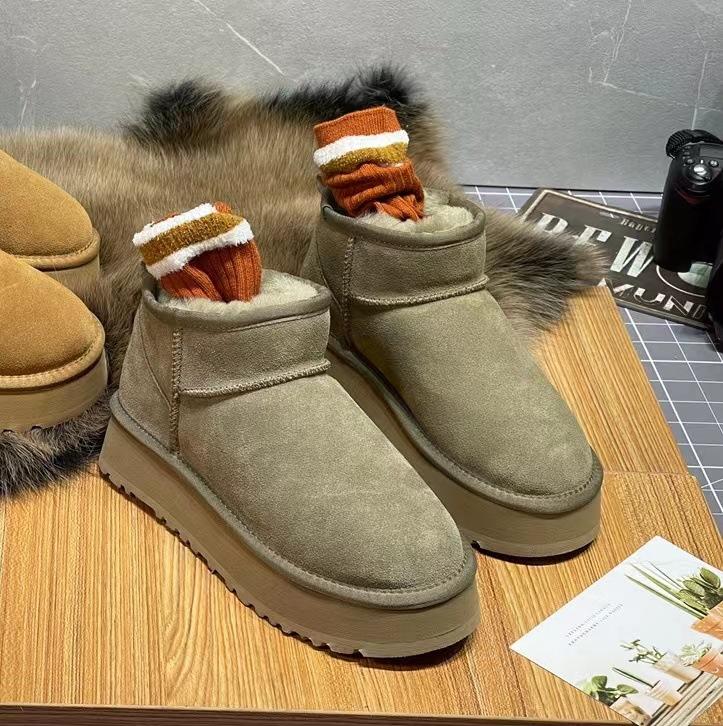 Меховые интегрированные зимние ботинки женские 2025 зима Чжоу Дунъюй такие же на толстой подошве с увеличением роста кожа шерсть короткие ботинки взрыв