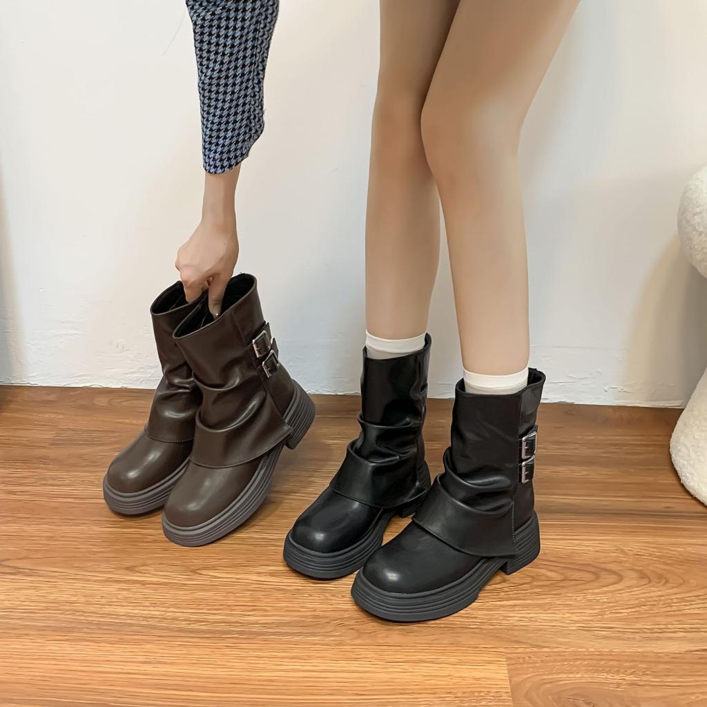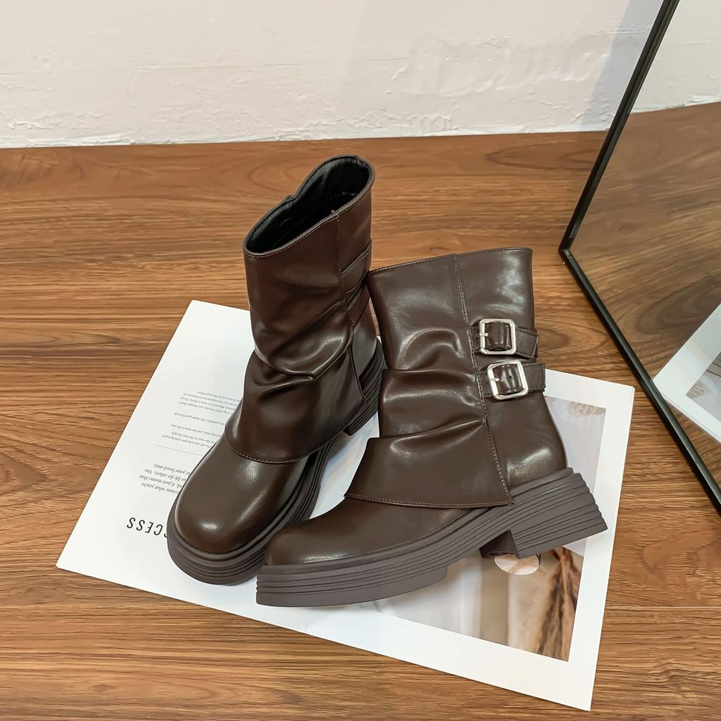 Maillard коричневые ботинки женские короткие ботинки 2025 новая осень и зима ботильоны вестерн платформа ботинки Мартин женские универсальные