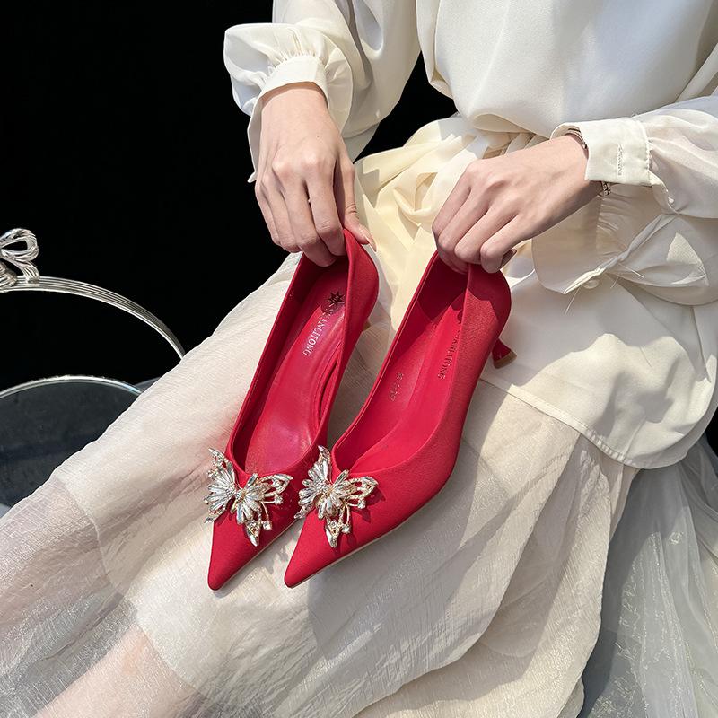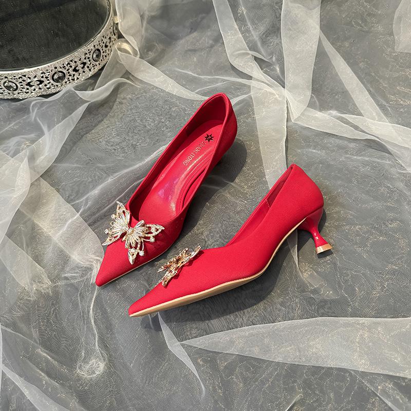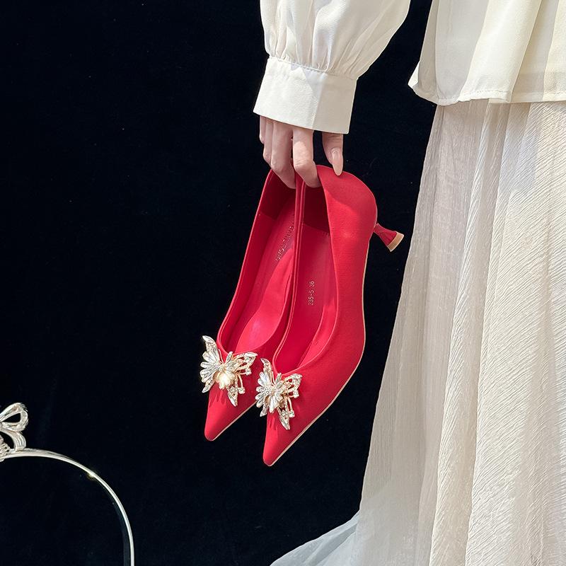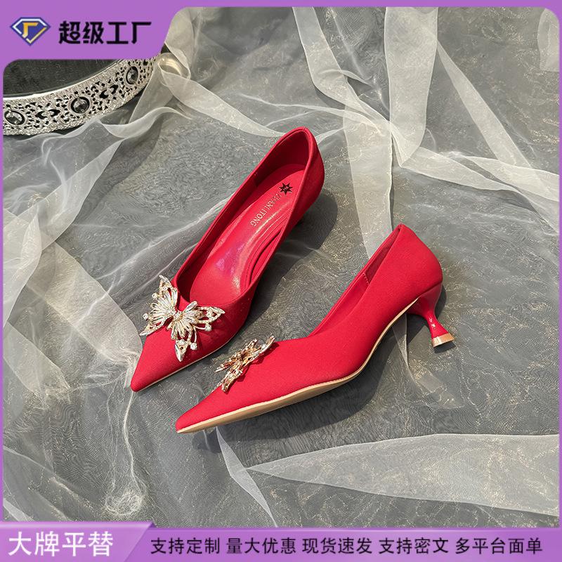2025 новые свадебные туфли не устают от низких каблуков 5 см красные свадебные туфли пряжка-бабочка легкий вырез туфли на высоком каблуке женские осень