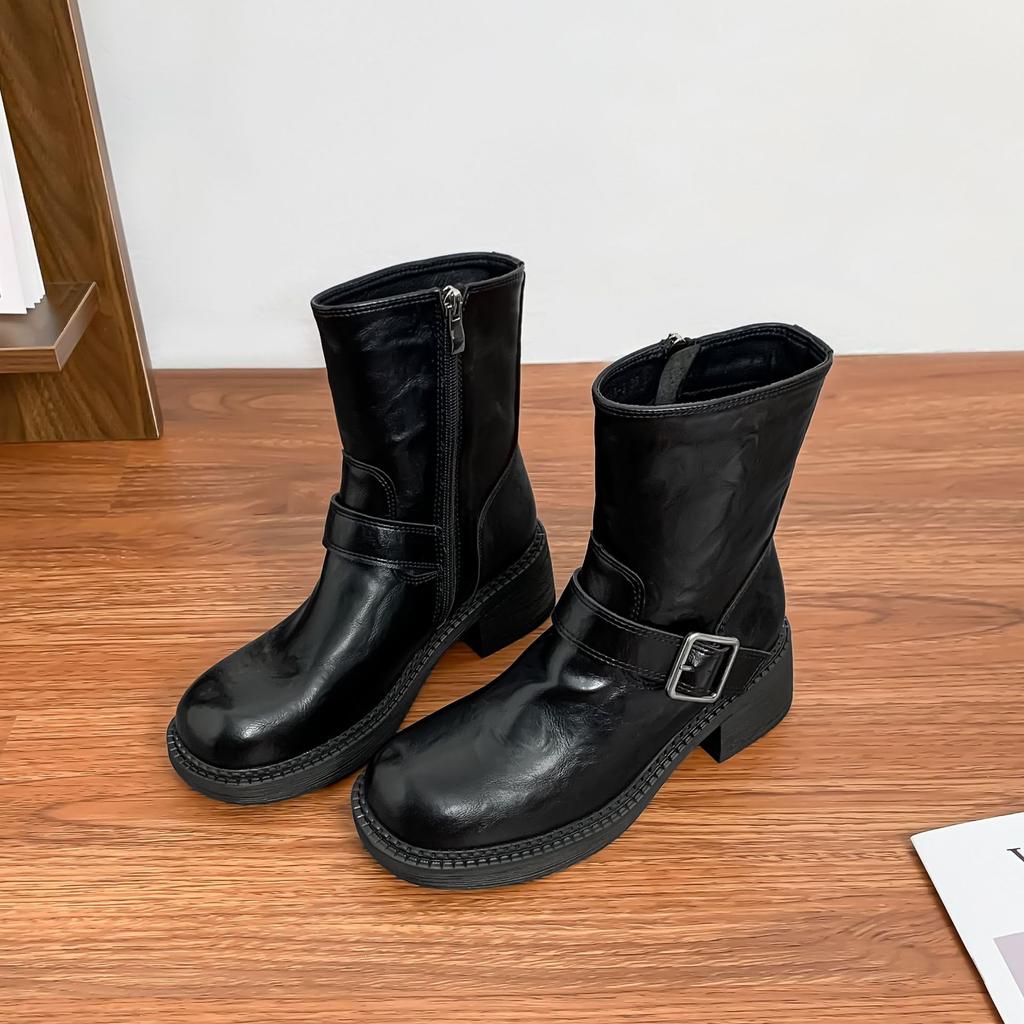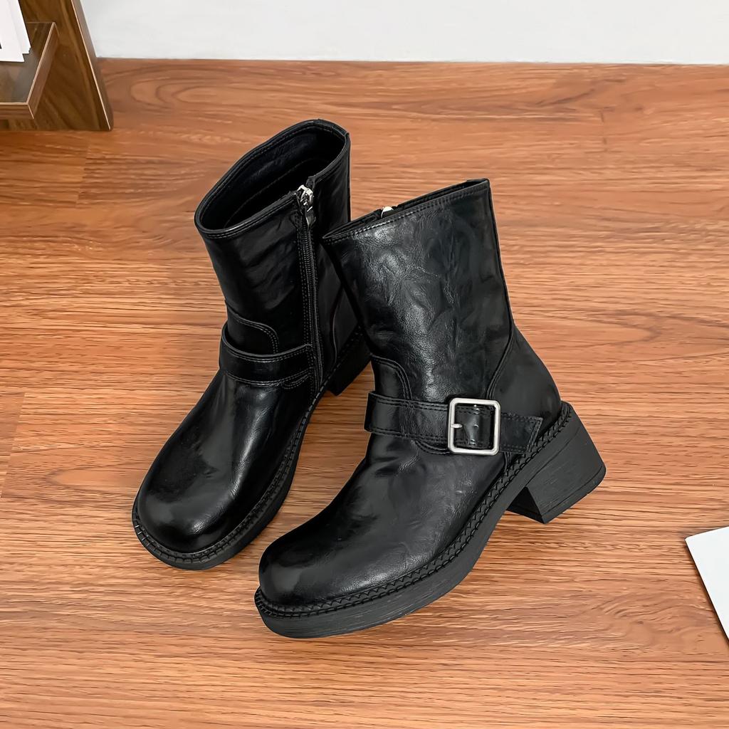 2025 зима новые короткие ботинки Мартин женские боковая молния маленькая толстая подошва увеличивающие рост эластичные ботинки женские ретро