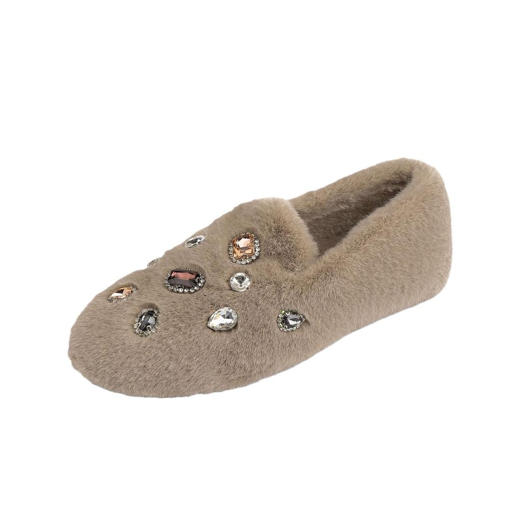 Зимние новые пушистые туфли на толстой подошве, женские, корейская версия, теплые туфли из толстого плюша, модная верхняя одежда с блестящими бриллиантами, женская обувь, бархат