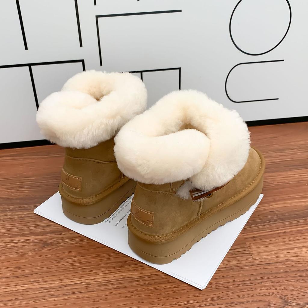 Зимние новые женские сноубутсы, модные, с маленькой толстой подошвой, увеличивающие рост, ботинки интернет-знаменитости, теплые ботинки с толстым бархатом для женщин