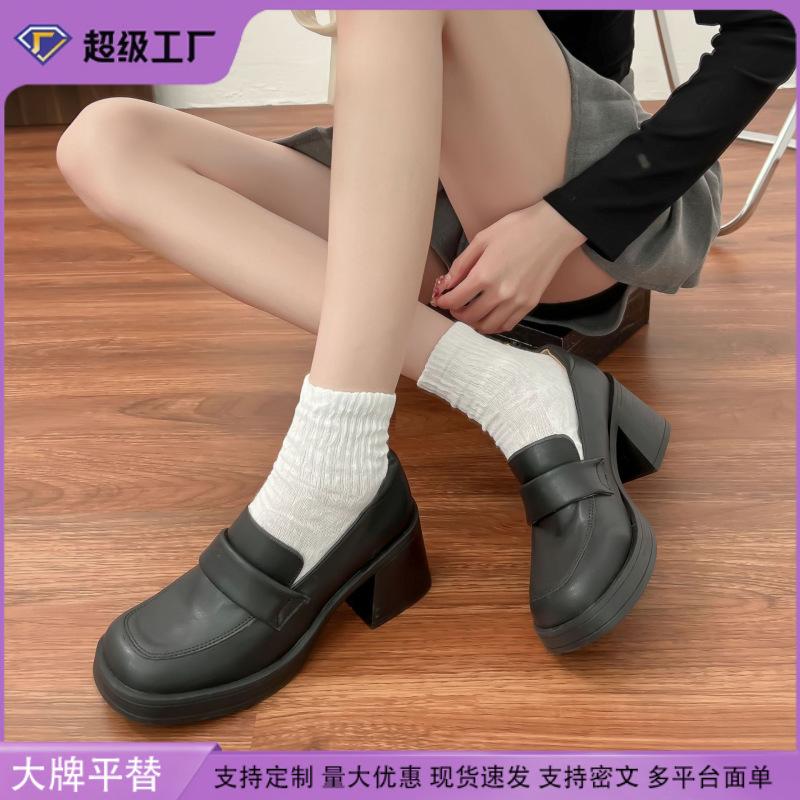 Маленькие женские кожаные туфли на толстой подошве, увеличивающие рост, 2025, французские ретро лоферы, удобные туфли с мягкой кожей и открытым верхом, детские