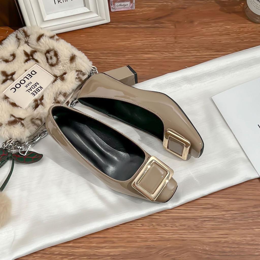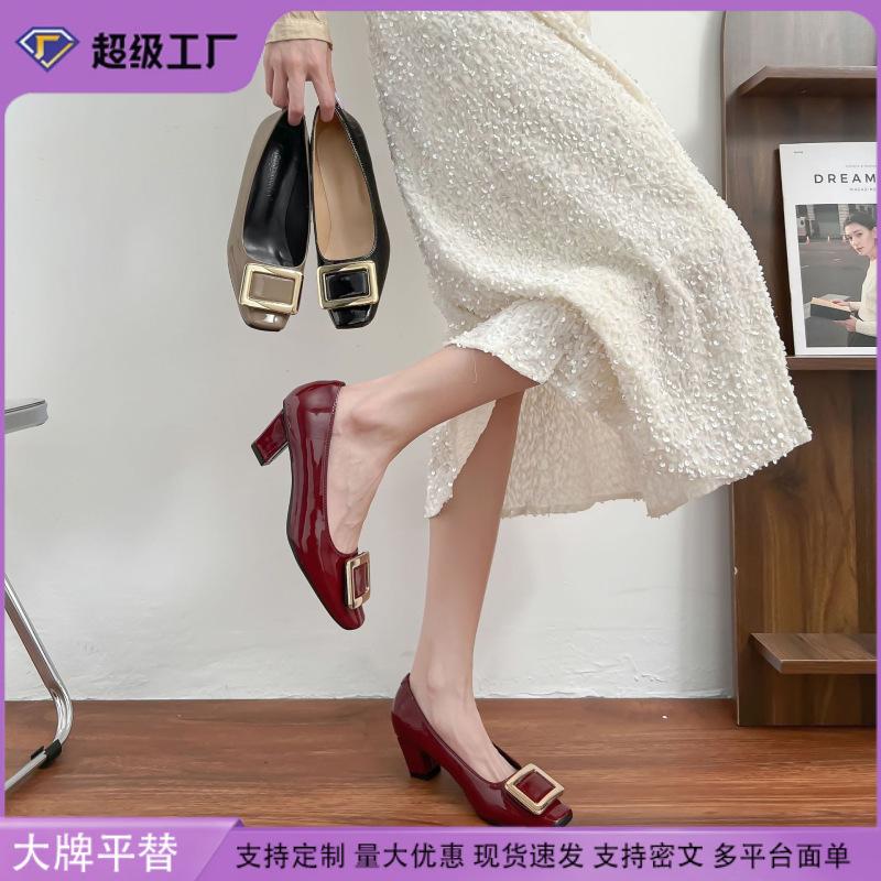 Виноградная мать весна новая французская мода туфли на высоком каблуке для женщин носить высококлассные толстые каблуки не устают ноги мелкий вырез одинарные туфли