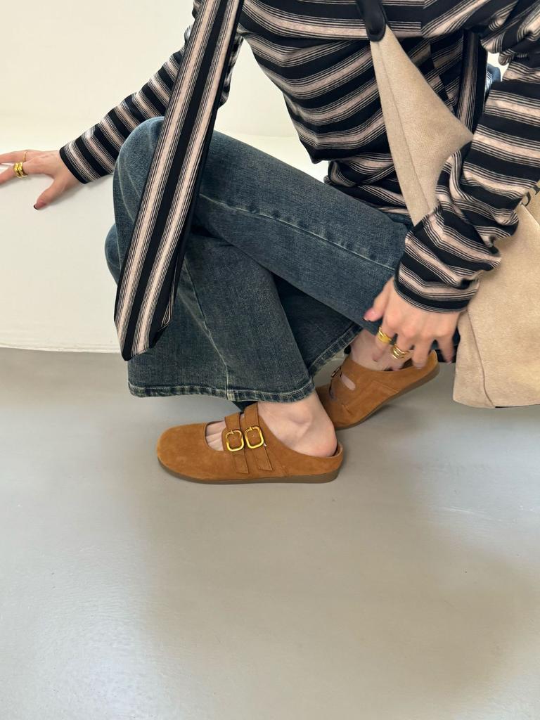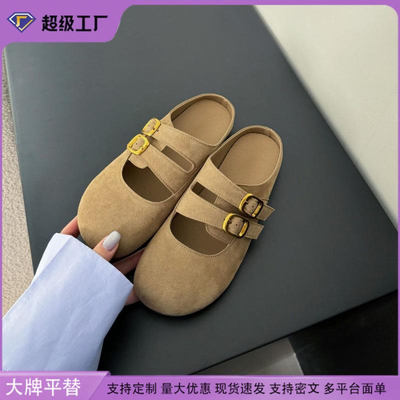 2025 весна новые туфли бокен женская одежда высококлассные полушлепанцы на толстой подошве с увеличением роста корейская версия ретро женской обуви