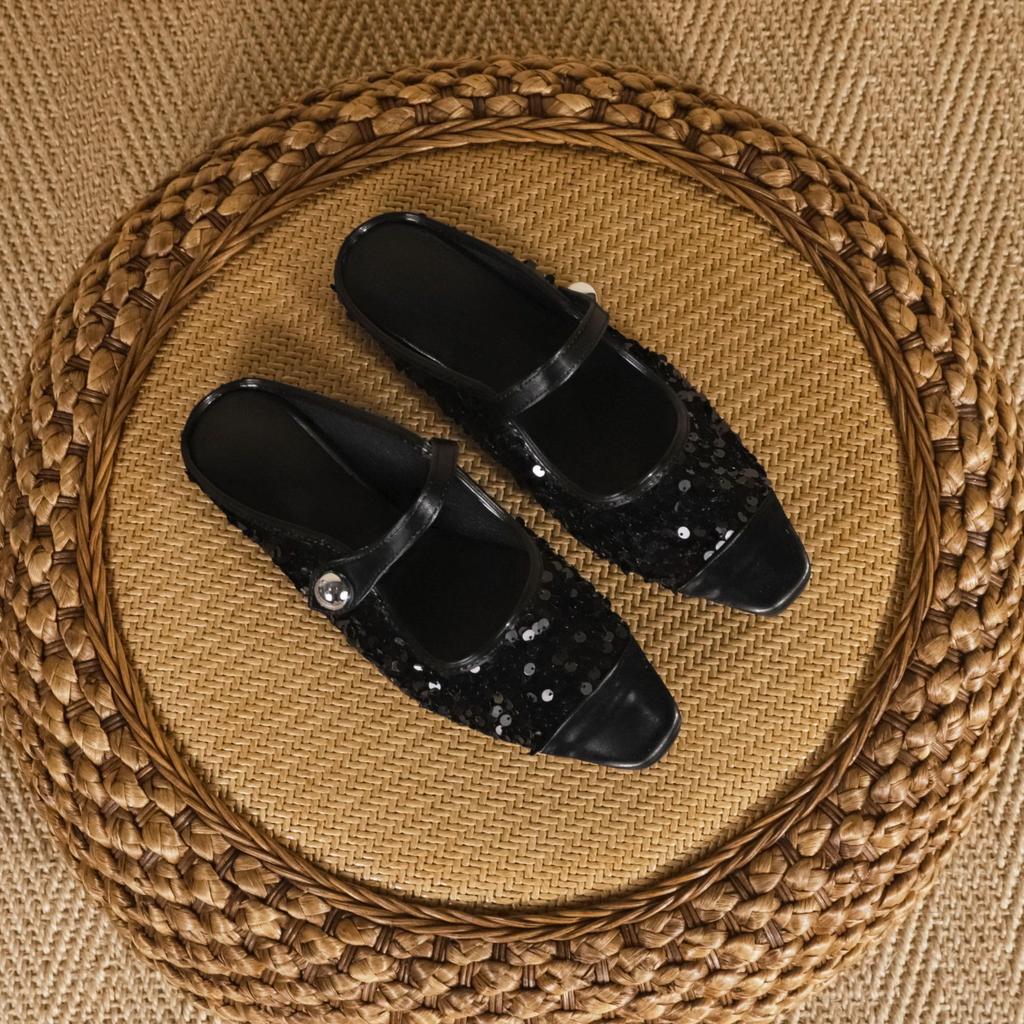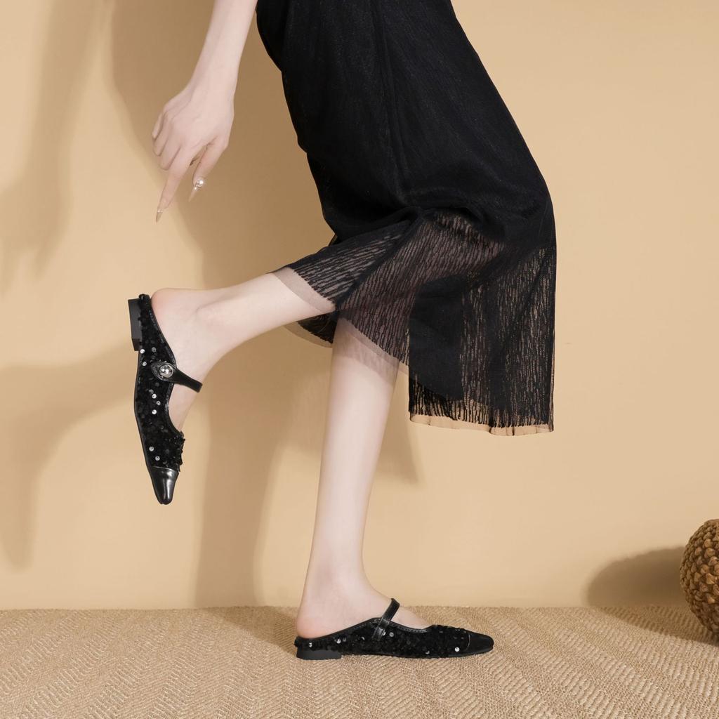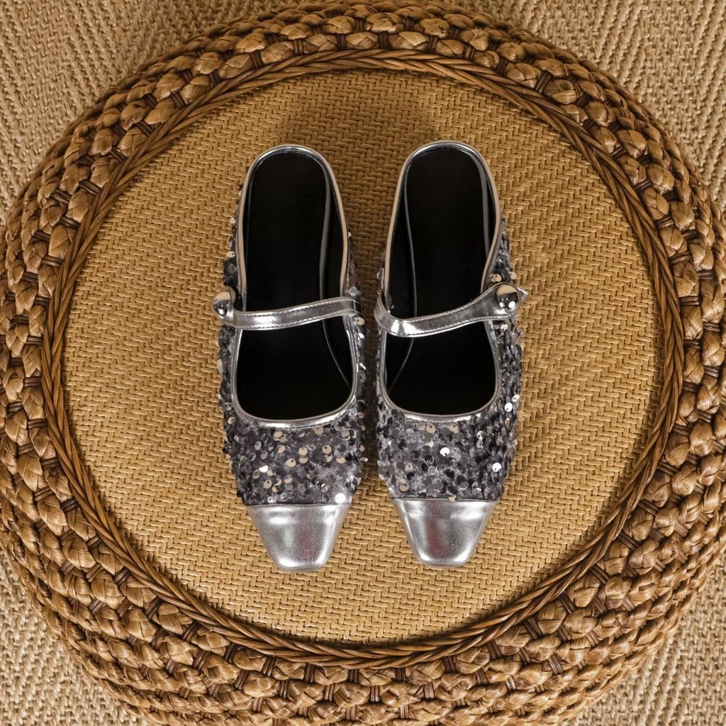 Виноградная мама осень новая мода сверкающие пайетки одинарная обувь женская модная одежда удобная половина к мюли одинарная обувь женская