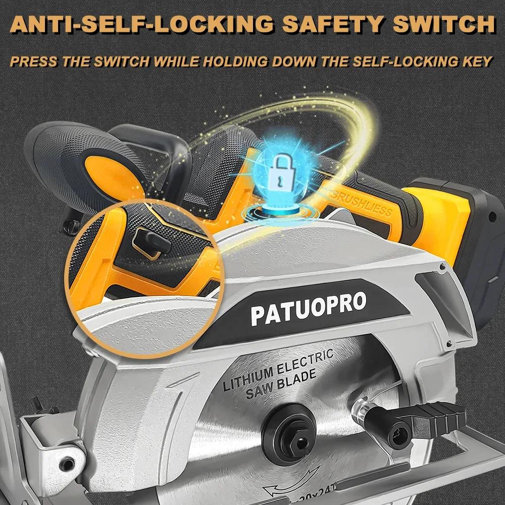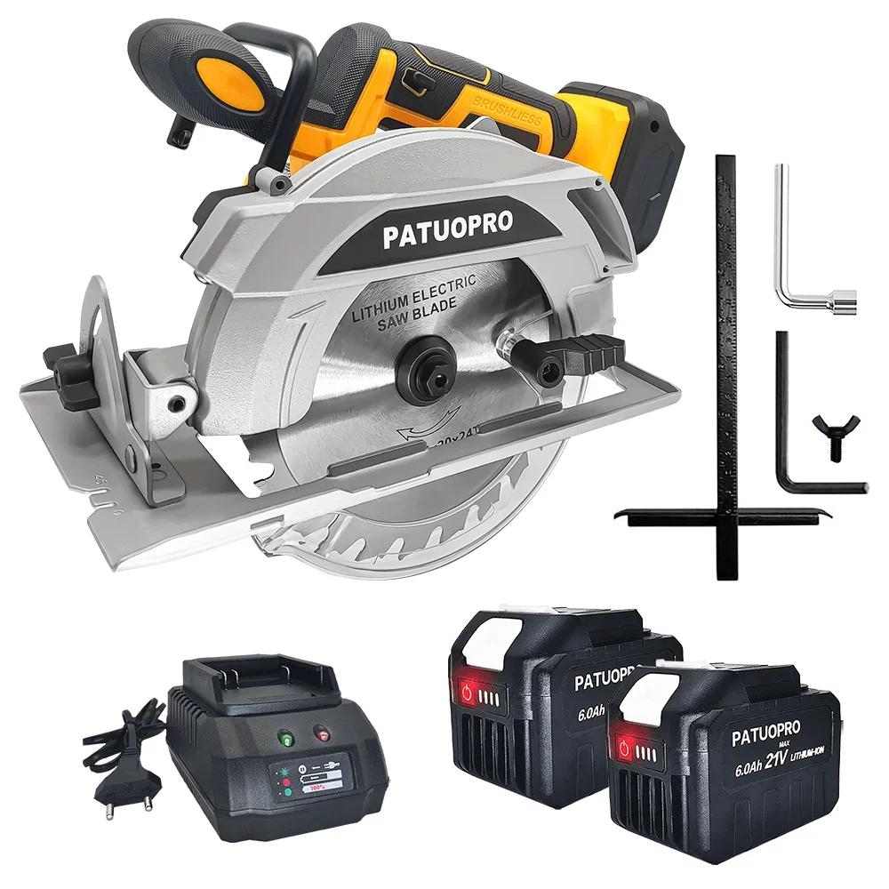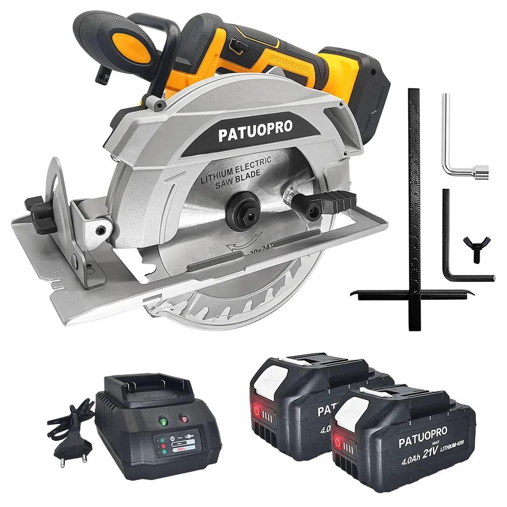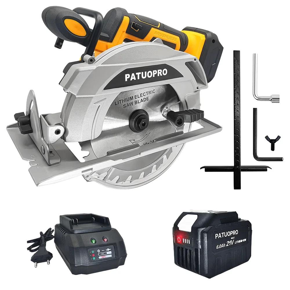 PATUOPRO 1500 Вт Бесщеточная циркулярная пила 6,5 дюйма Аккумуляторная электрическая пила Камень Деревообработка Резка Электроинструменты Для аккумулятора Makita 18 В