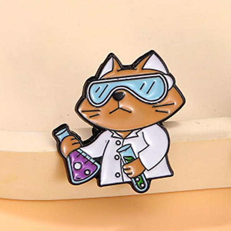 Мультяшная брошь-кошка с научным экспериментом, животное-химик, пробирка, фиксированная игла, аксессуар-значок