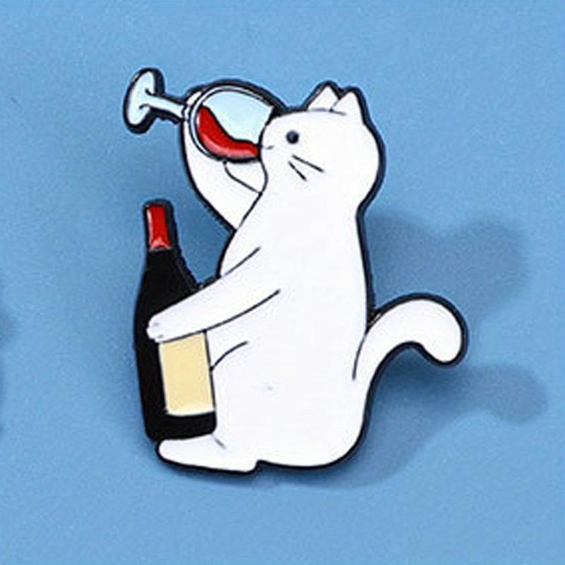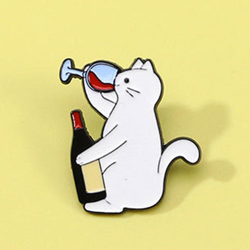 Кот пьет красное вино Интересная брошь Студенческий рюкзак Игла Пряжка Значок