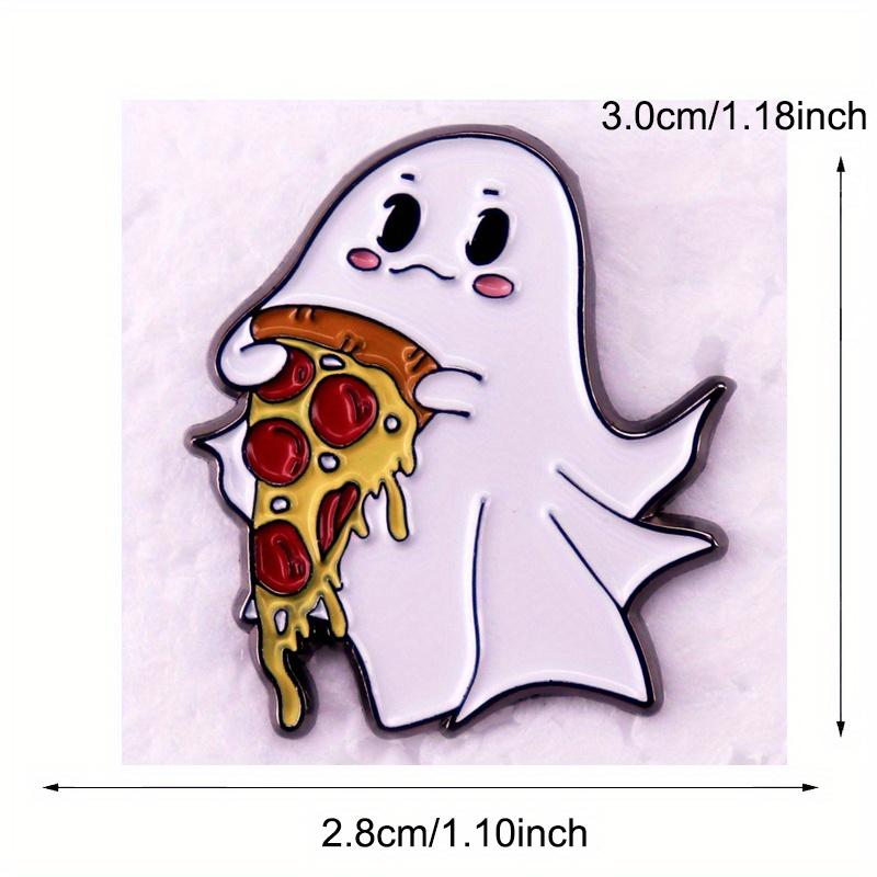 Милый эмалевый значок-брошь в виде привидения с пиццей, рождественский, хэллоуинский значок, пряжка, аксессуар