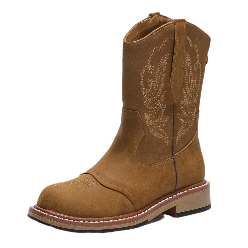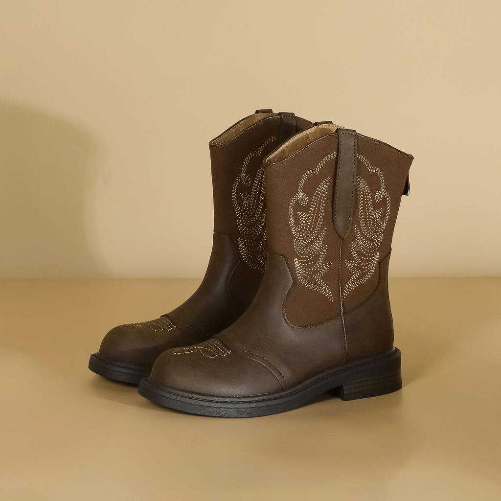 Grape Mom 2025 новые вышитые ботфорты-чулки средней длины с V-образным вырезом, ковбойские сапоги в западном стиле, ботинки на небольшой толстой подошве с увеличением высоты