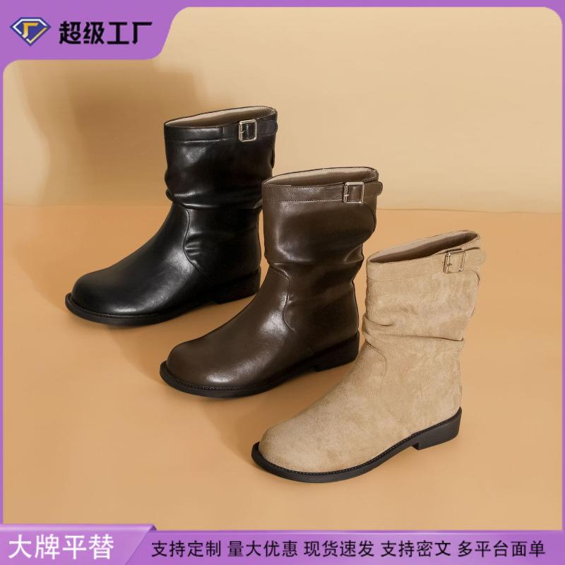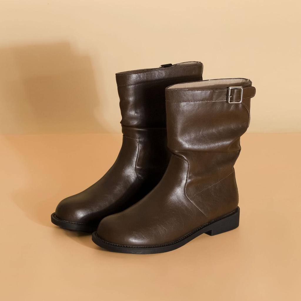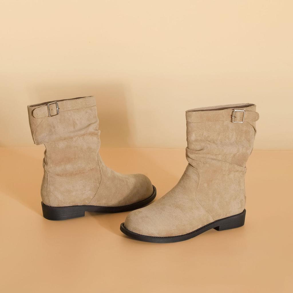 Grape Mom 2025 Winter New Short Martin Boots Korean Edition Fashion Pleated Pile Boots Korean Edition Boots for School Season