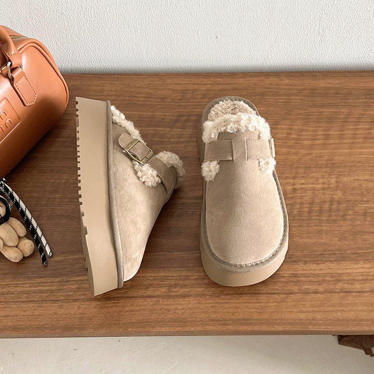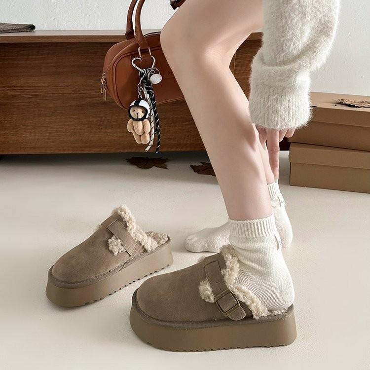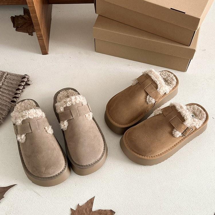 Женские тапочки Baotou из искусственной овчины, плюшевые, теплые, зимние, на толстой подошве, с увеличением высоты, домашние тапочки, повседневные, для ходьбы, комнатные туфли, снежные хлопковые тапочки