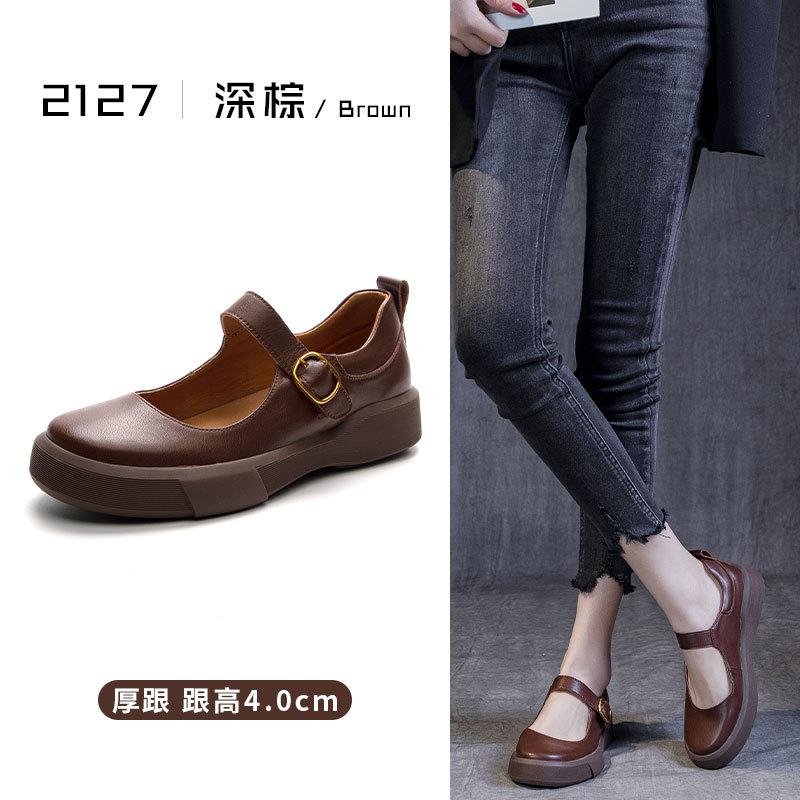 2025 новые весенне-осенние туфли Мэри Джейн, женские, большого размера, на мягкой подошве, в стиле ретро, повседневные, на плоской подошве, с ремешком на одной пряжке, маленькие кожаные туфли