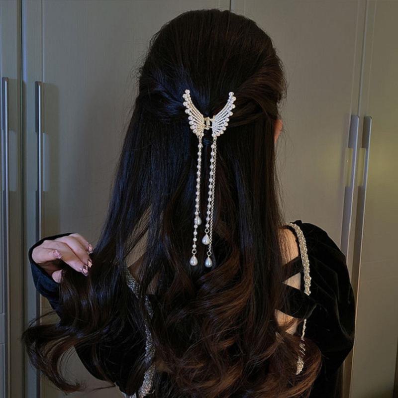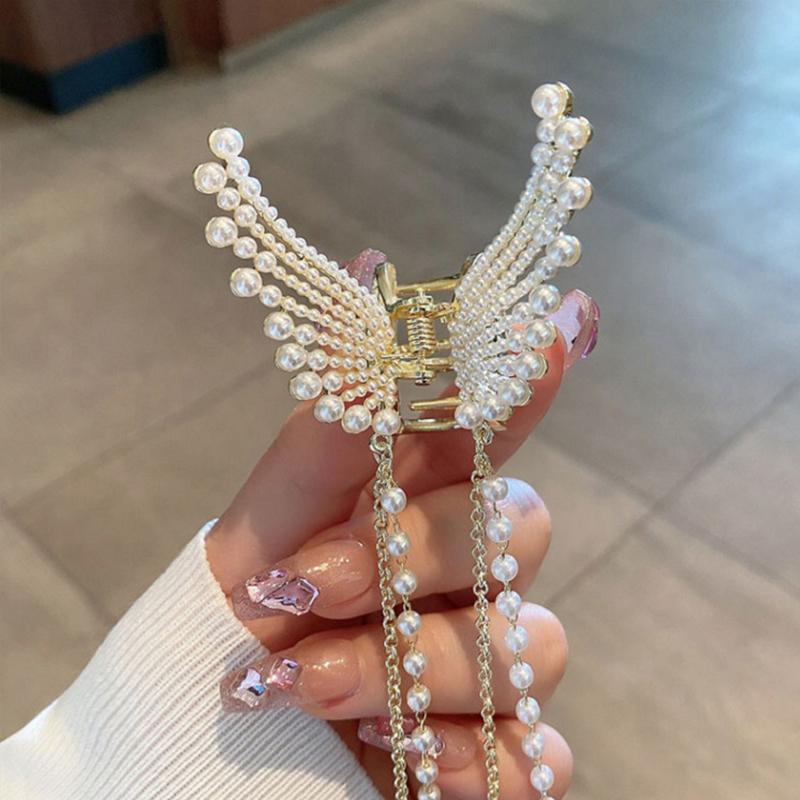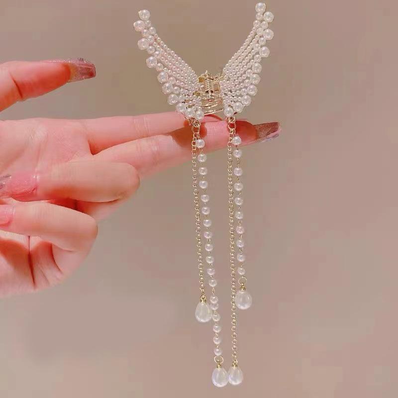 Супер фея бабочка кисточка захват с бриллиантовой жемчужиной крылья ангела затылок захват для волос женский летний полузажим артефакт для волос