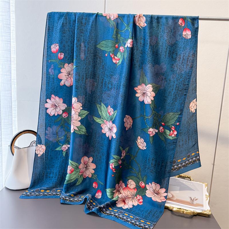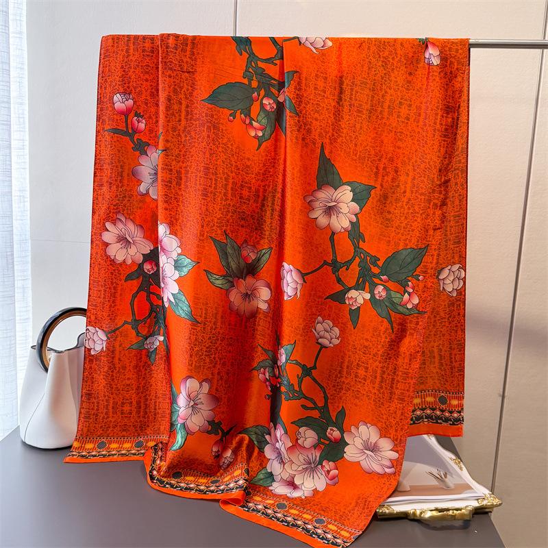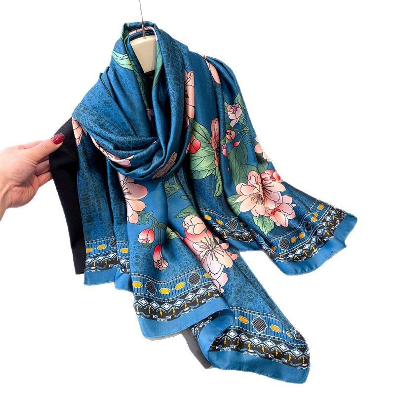 Весенне-летняя имитация шелкового парчового модного солнцезащитного шелкового шарфа, длинный шарф, шелковая печатная шаль, универсальная косынка, шарф