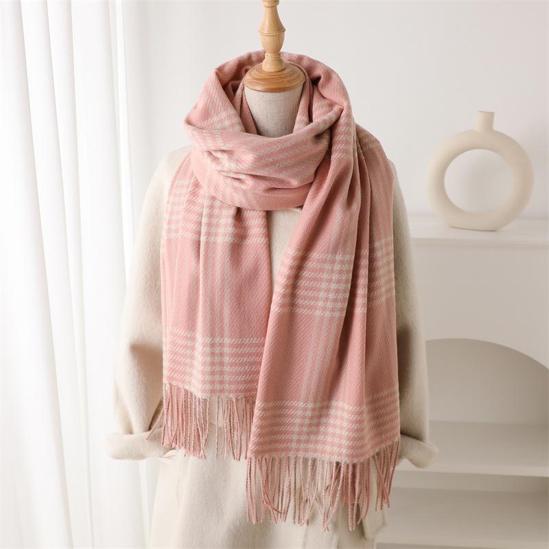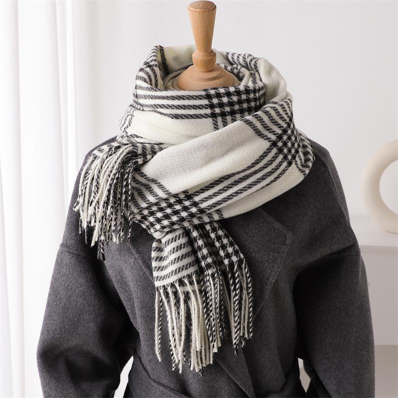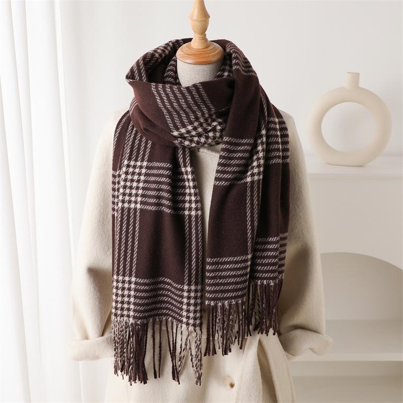 Имитация кашемира Ретро клетка Теплая шаль-шарф для защиты от холода Осенне-зимняя модная атмосфера Универсальный шарф с бахромой