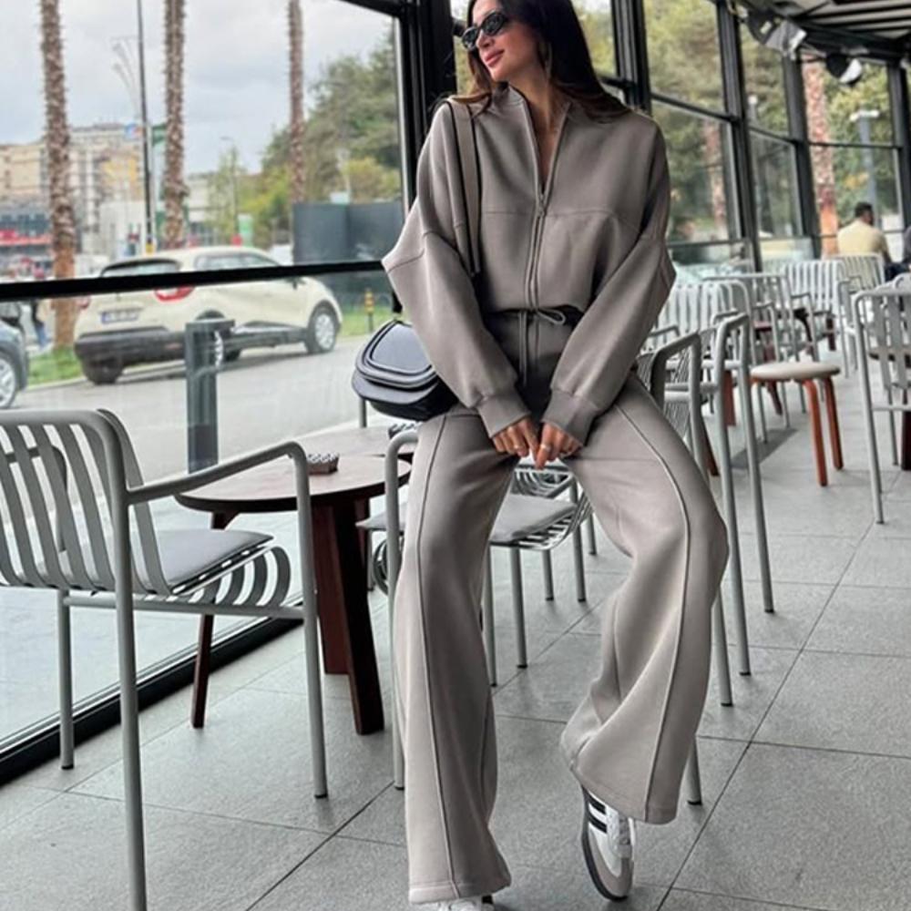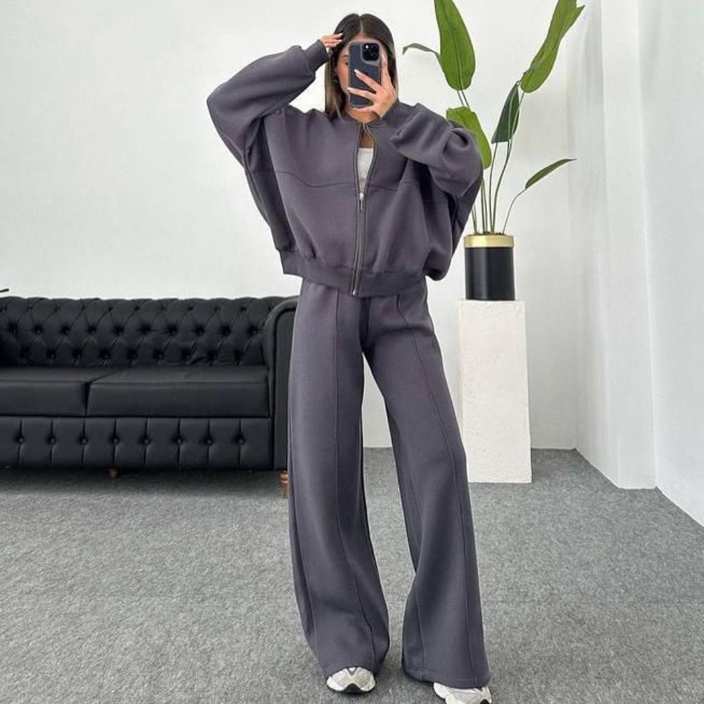 Женский осенне-зимний повседневный кардиган однотонного цвета, спортивный костюм, модный уличный стиль, куртка с длинными рукавами, длинные брюки, набор из двух предметов
