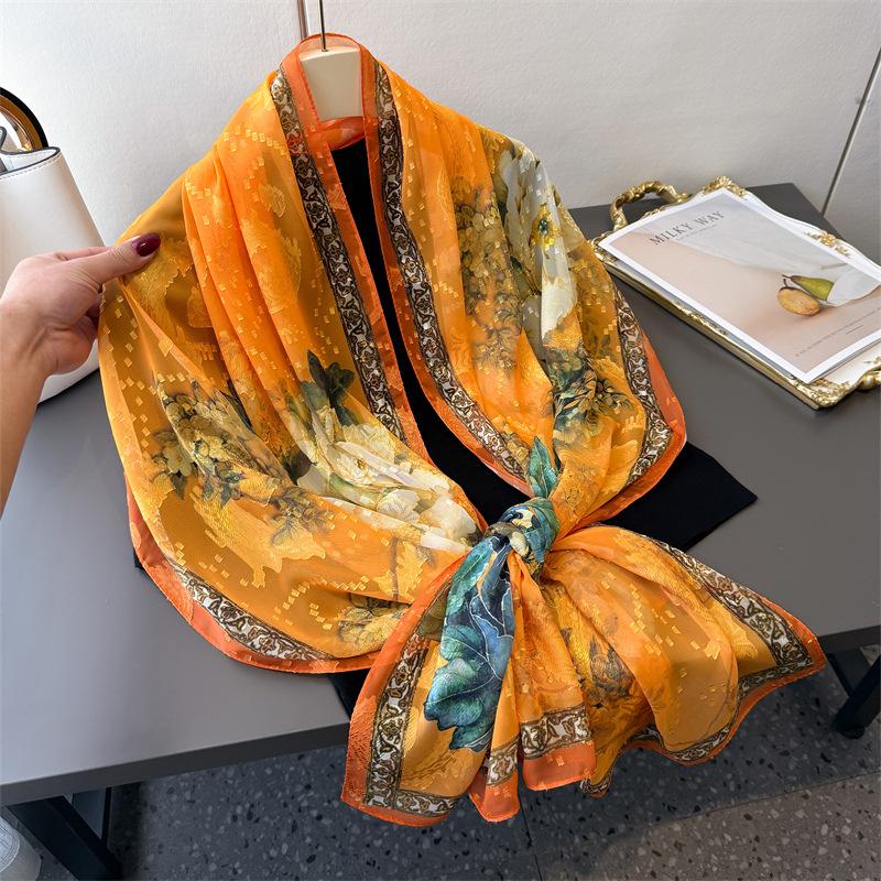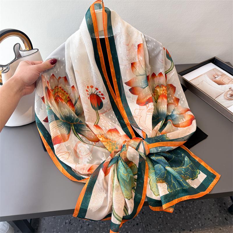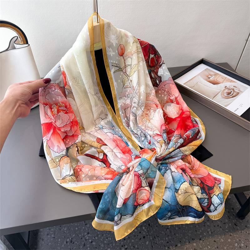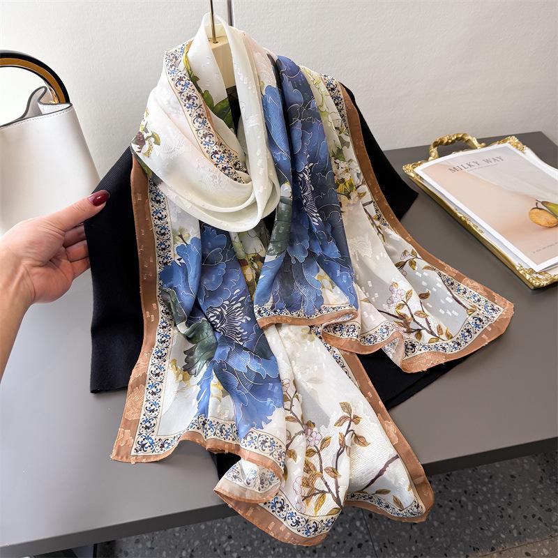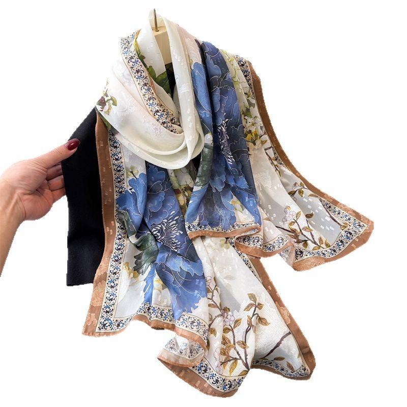 Принт пиона Срез цветка Весна и лето Шелковый шарф Большой длинный шарф Высокий стиль Дорожная шаль Защита от солнца Женский шарф Головной платок
