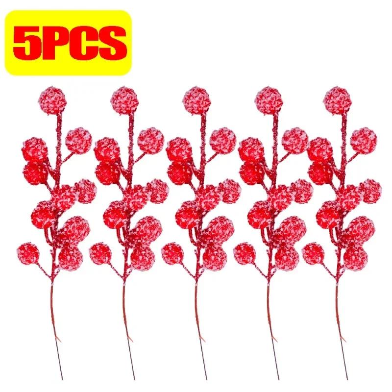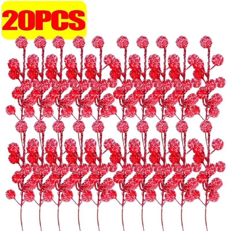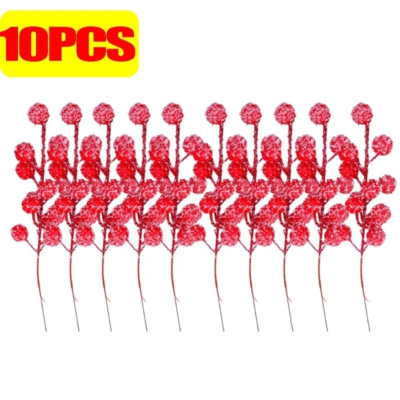 Искусственная ягода падуба с блестящими снежинками на стебле, пики для рождественской елки, пики с красными ягодами, рождественское украшение, декор для свадебной вечеринки