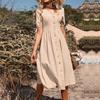 Женские модные летние весенние однотонные повседневные платья с v-образным вырезом и короткими рукавами и высокой талией