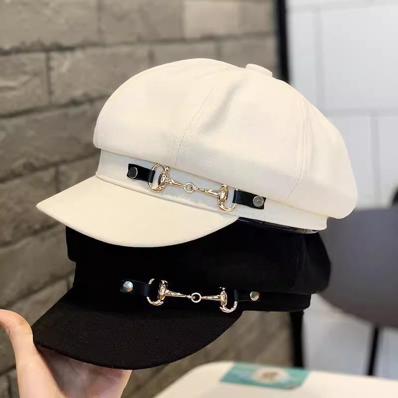 Шляпа весенне-летняя тонкая дышащая металлическая пряжка ретро восьмиугольная шляпа универсальная для лица маленькая беретка