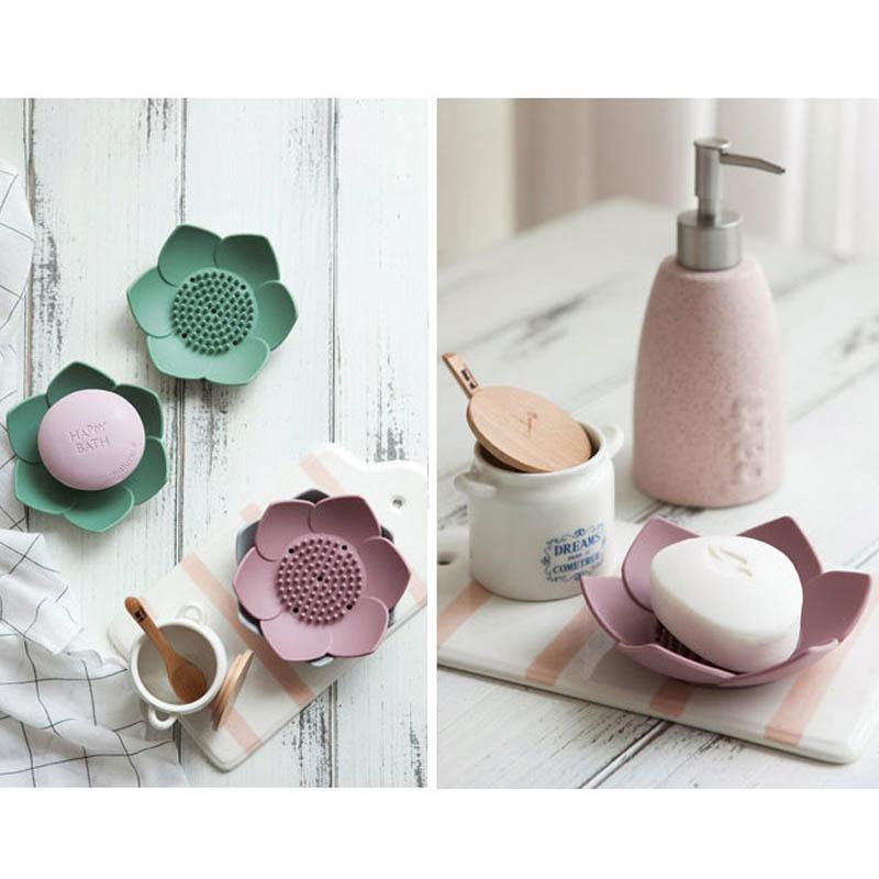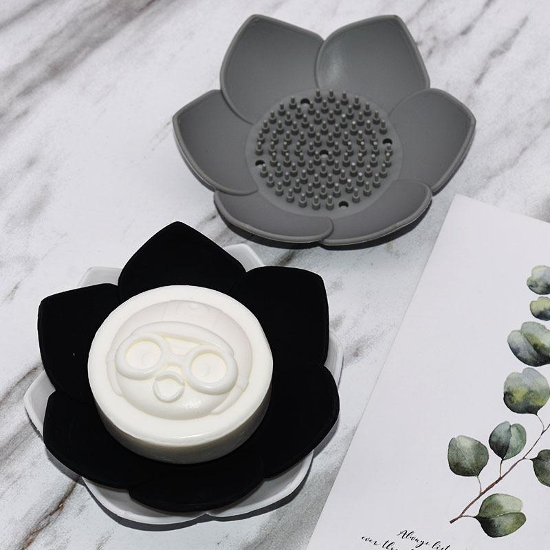 Портативная силиконовая мыльница с дренажем, в форме лотоса, для посудомоечной машины, противоскользящий поддон для мыла с легким сливом, аксессуары для ванной комнаты