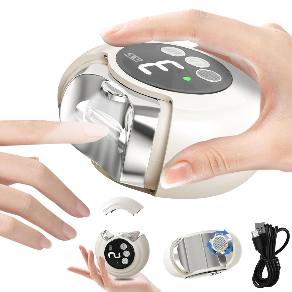 [Легкий, Легко чистится и Малошумная конструкция] Эта электрическая пилка для ногтей компактна и помещается в ладони, позволяя даже детям и женщинам с маленькими руками надежно ее удерживать. Компактный размер позволяет легко хранить его в небольшой сумке или кармане. Чтобы утилизировать обрезки ногтей, просто откройте крышку и выбросьте их в мусорное ведро после использования, чтобы предотвратить их разбрасывание.. Для очистки используйте прилагаемую щетку, чтобы смести любую грязь.. Кроме того, электрическая пилка для ногтей работает очень тихо, оснащена ультра-тихим высокоскоростным приводным двигателем, уровень шума которого составляет менее 40 дБ. Низкий уровень шума не побеспокоит спящих детей.