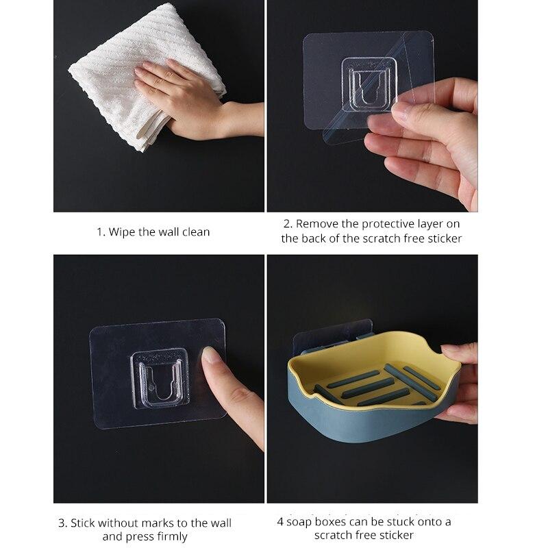 • Самоклеящаяся установка :Эта мыльница имеет самоклеящуюся конструкцию, что позволяет легко установить ее на стену без необходимости пробивать отверстия или сверлить.. Это идеально для тех, кто хочет простое решение для хранения.