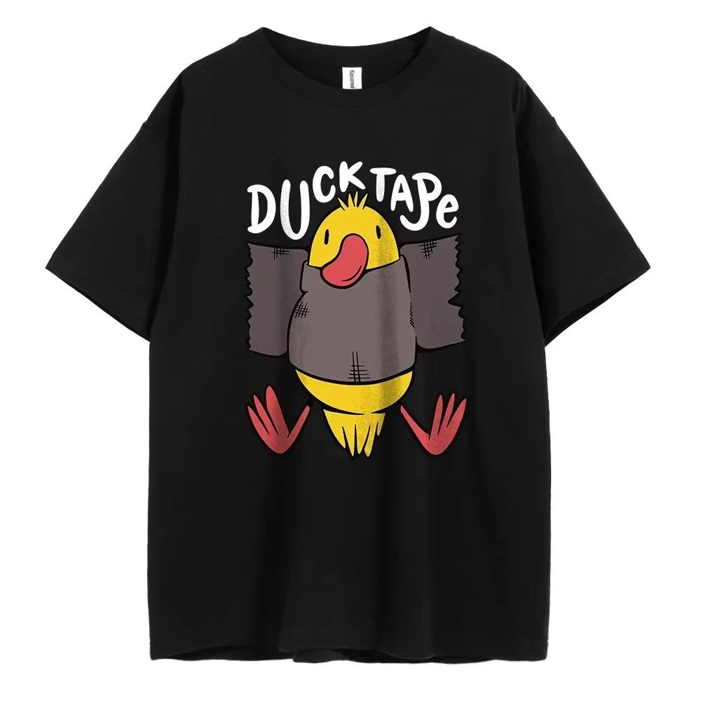 2024 Лето Новый мужской 100% хлопок Утенок с английским буквенным принтом Высокое качество Повседневный уличный спортивный модный круглый вырез Топ S-4XL