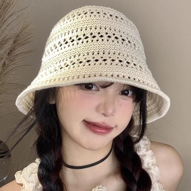 Панама женская летняя новая вязаная ажурная панама солнцезащитная шляпа универсальная шляпа-ведро