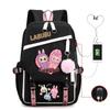 Студенческий школьный рюкзак с принтом Лабубу, многофункциональный, большой вместимости, с USB-портом