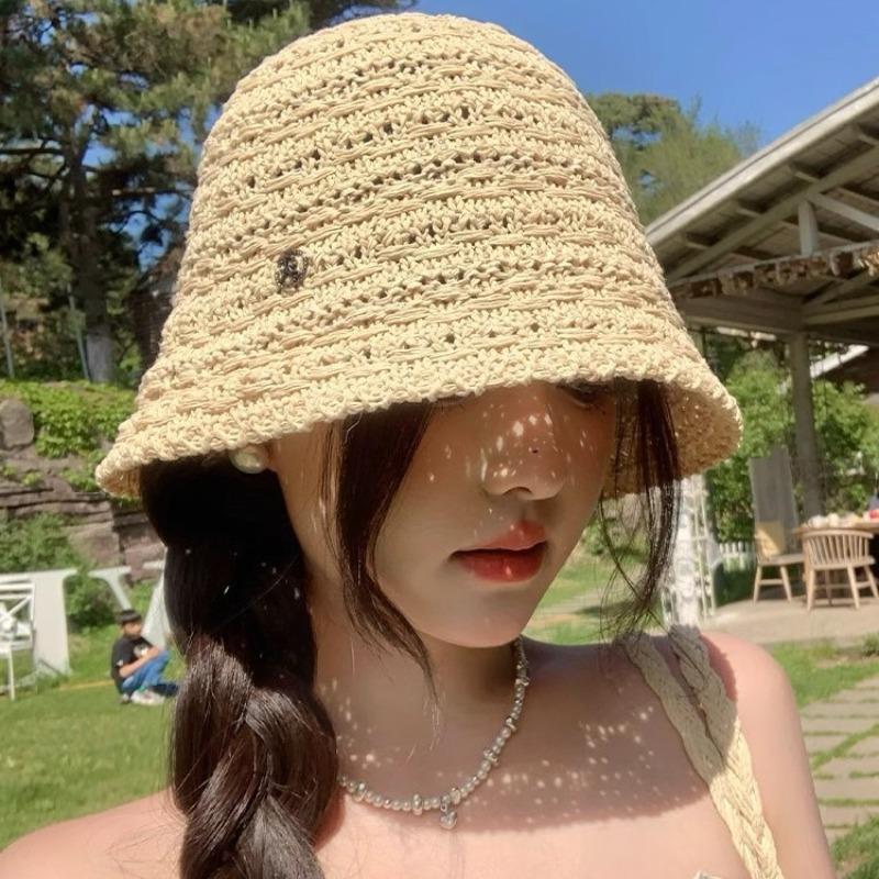 Соломенная шляпа женская новые летние модели показывает лицо маленькая приморская шляпа-ведро солнцезащитная универсальная шляпа-ведро для прогулок шляпа-таз